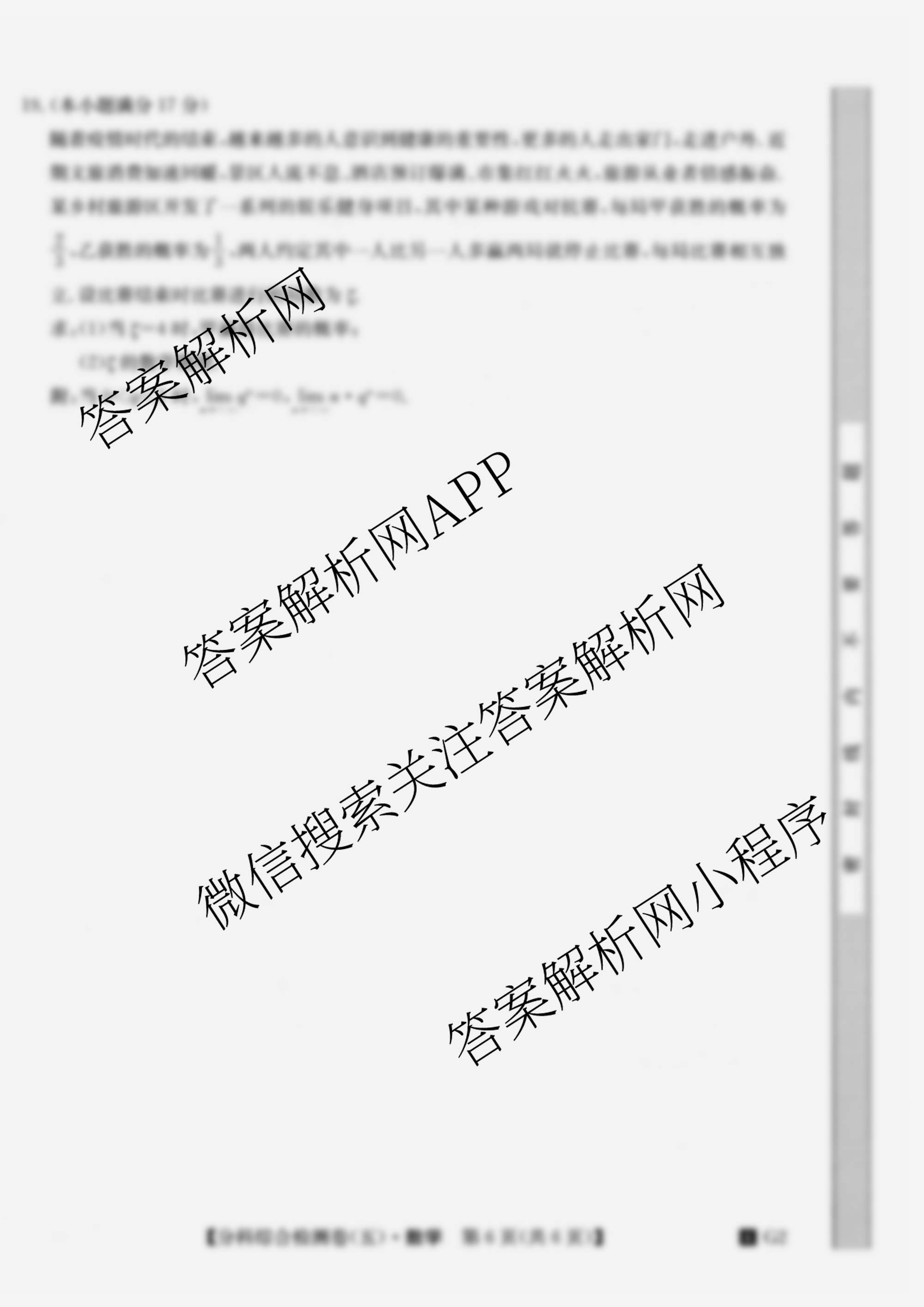 2024分科综合检测卷 数学(4 G2)(五)5试题由衡中同卷整理,获取更多分科综合检测卷答案解析,请在各大应用商店搜索下载答案解析网APP。