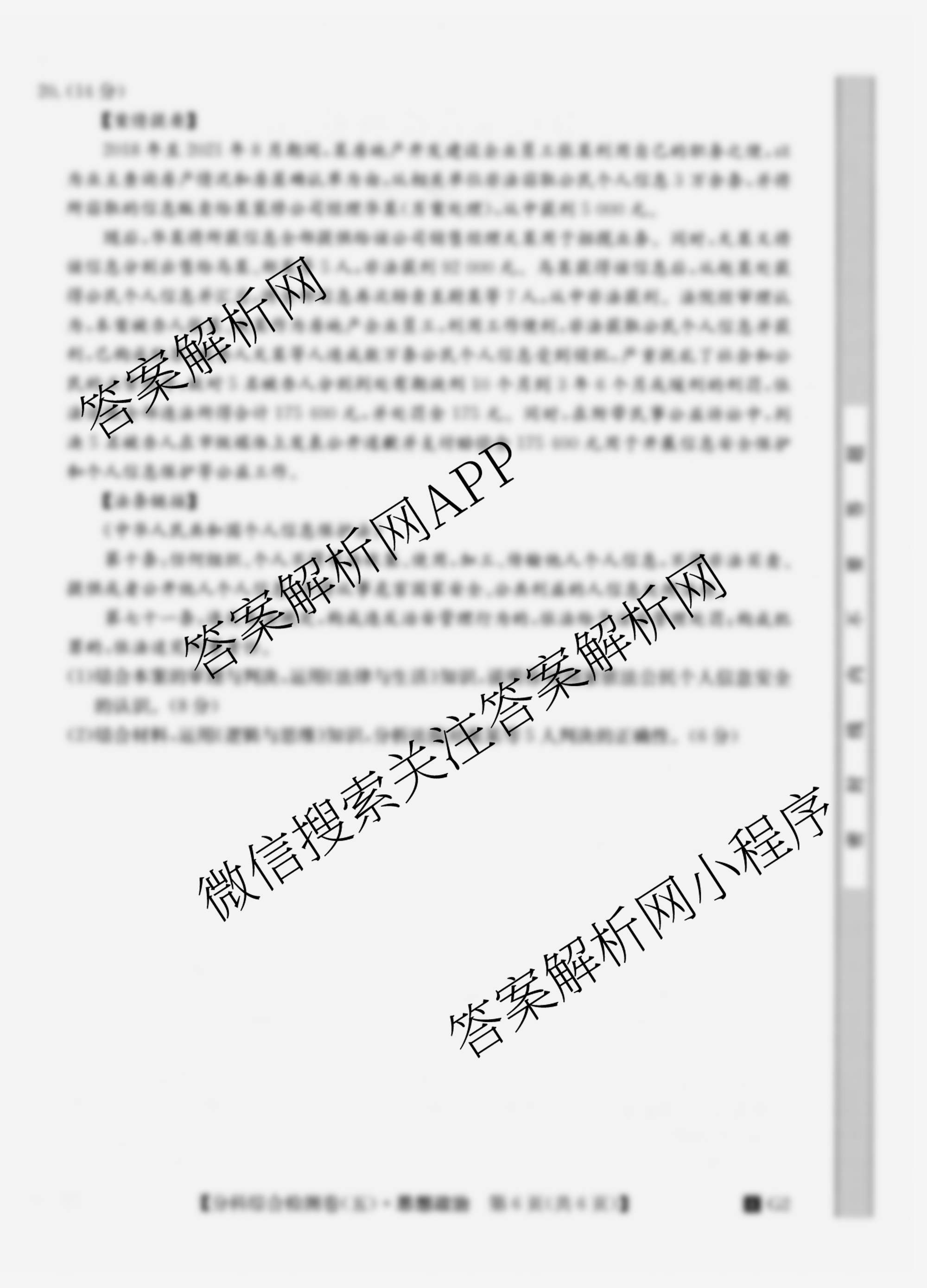 2024分科综合检测卷 政治(4 G2)(五)5试题由衡中同卷整理,获取更多分科综合检测卷答案解析,请在各大应用商店搜索下载答案解析网APP。