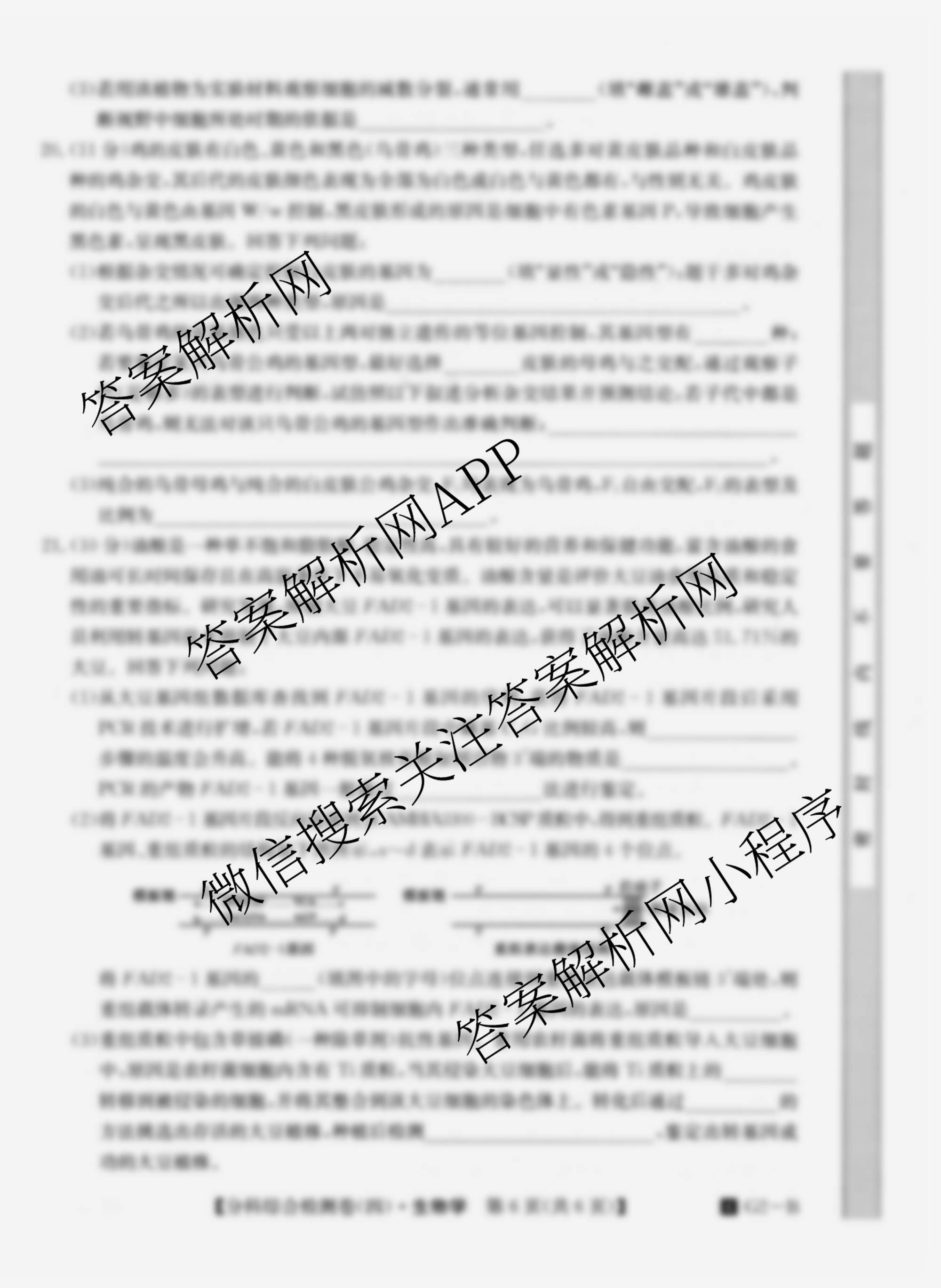 - [高二]2024分科综合检测卷 生物(4 G2-A)(四)4答案