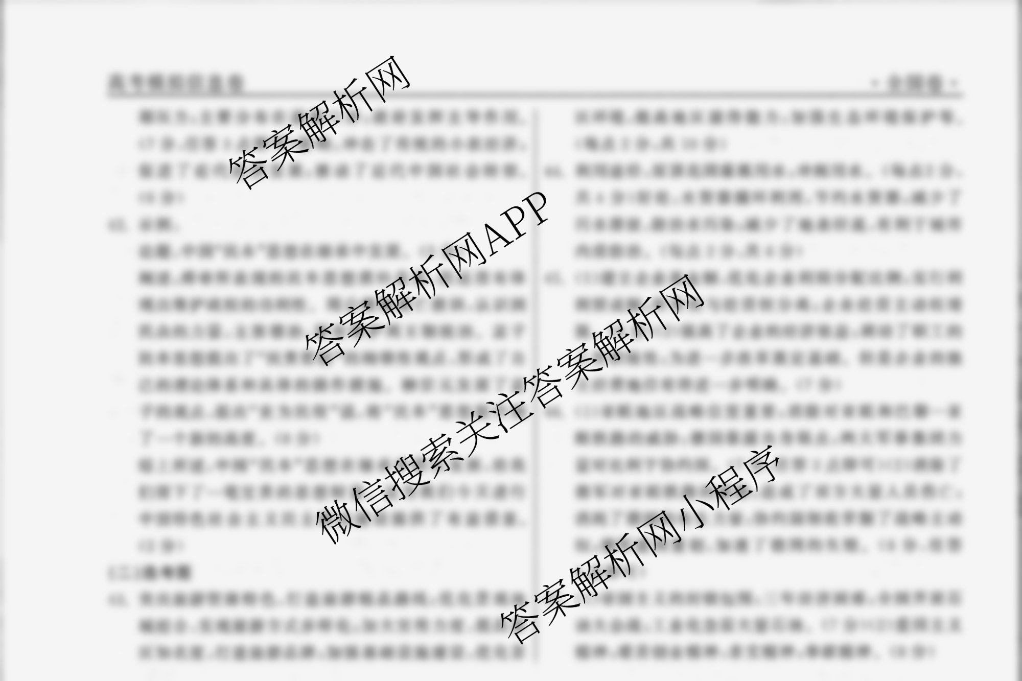 - (衡中同卷)2024届 信息卷 文综(全国卷)(二)2答案
