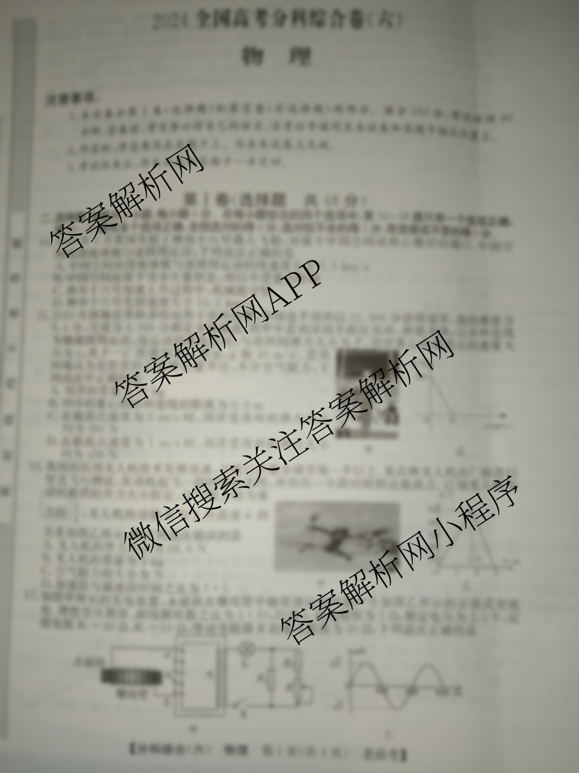 2024全国高考分科综合卷(六)6物理(老高考)试题由衡中同卷整理,获取更多全国高考分科综合卷答案解析,请在各大应用商店搜索下载答案解析网APP。