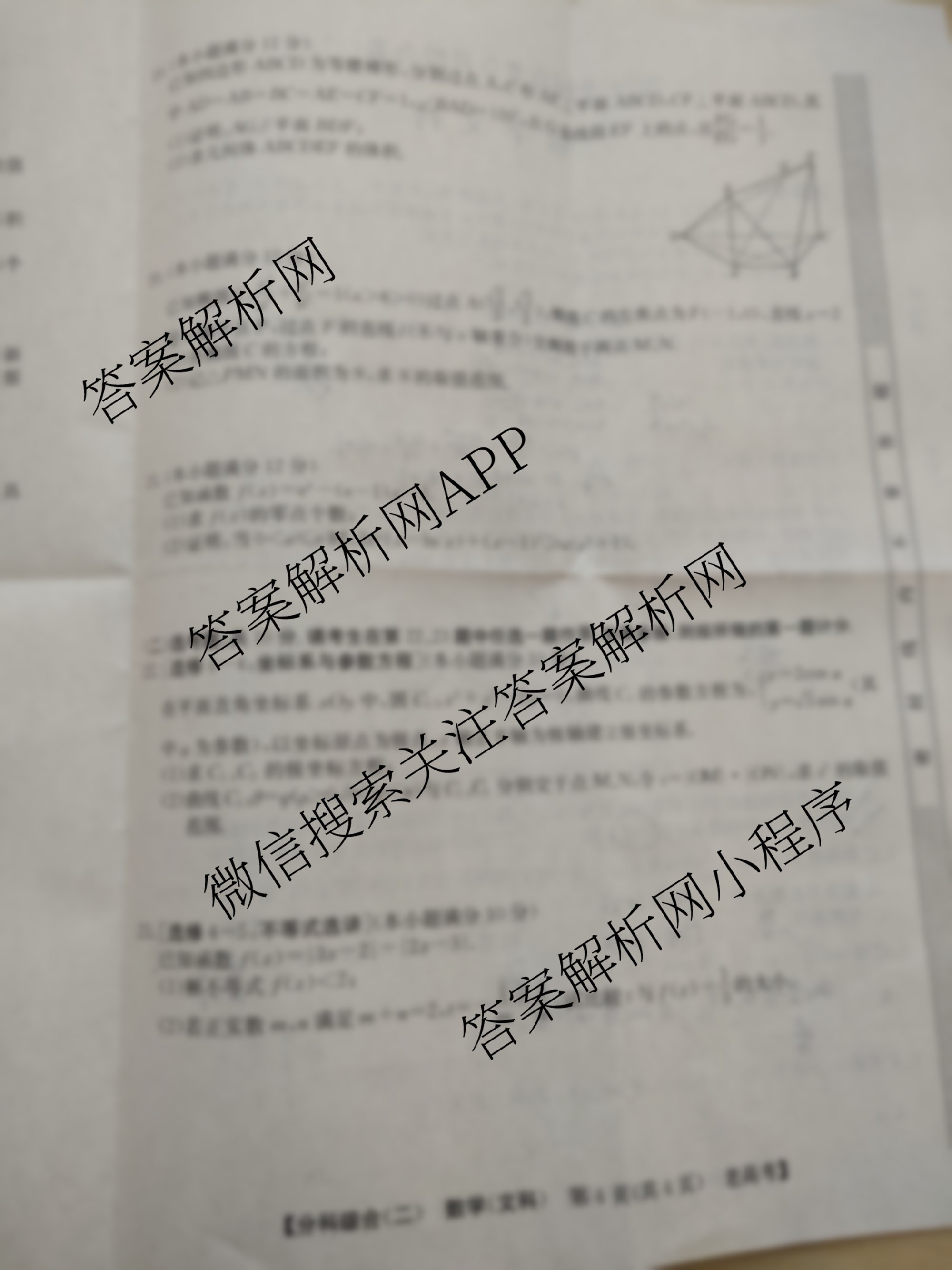 2024全国高考分科综合卷(二)2文数(老高考)试题由衡中同卷整理,获取更多全国高考分科综合卷答案解析,请在各大应用商店搜索下载答案解析网APP。