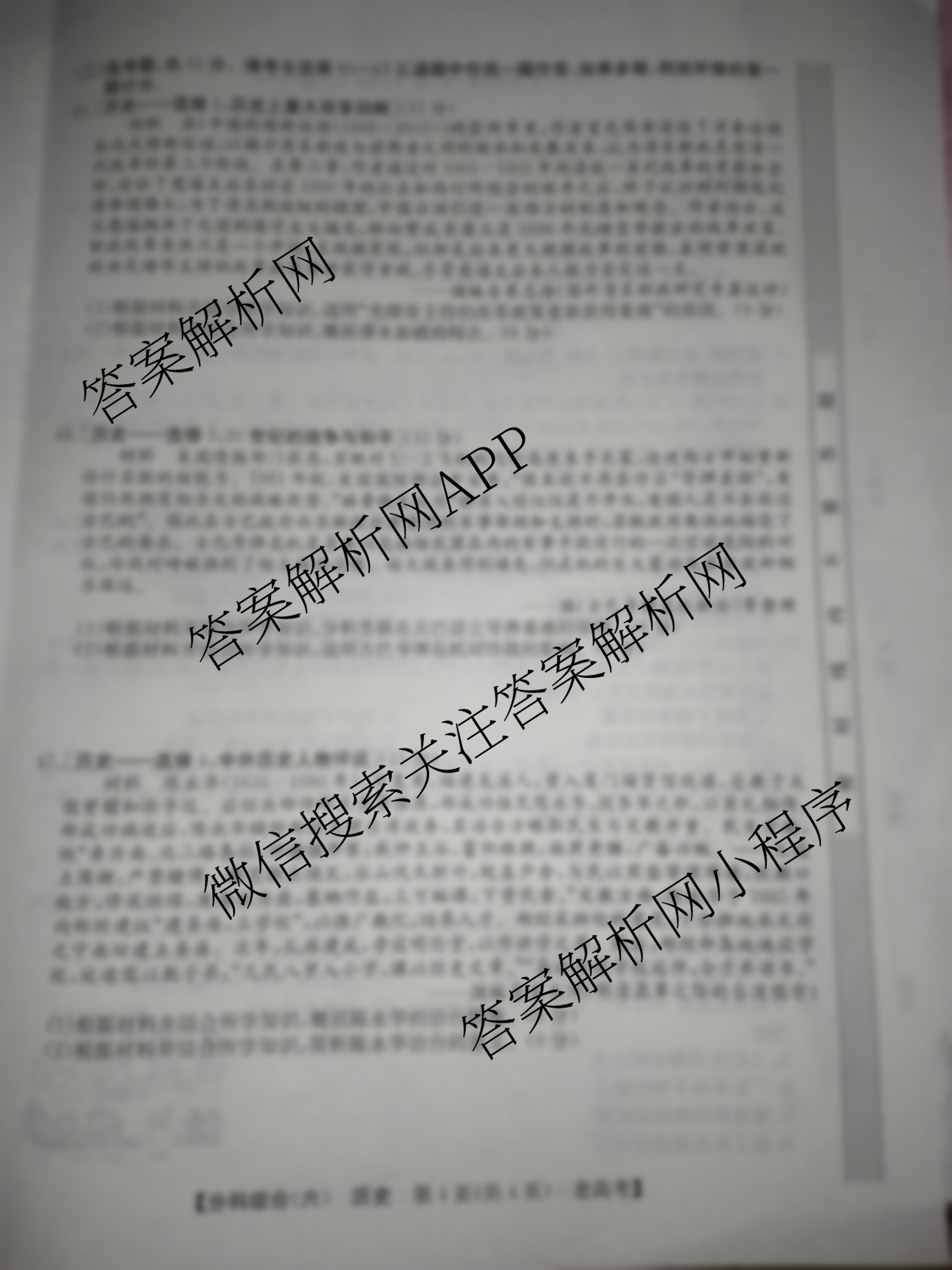 - [高三]2024[全国高考分科综合卷](六)6历史(老高考)试题