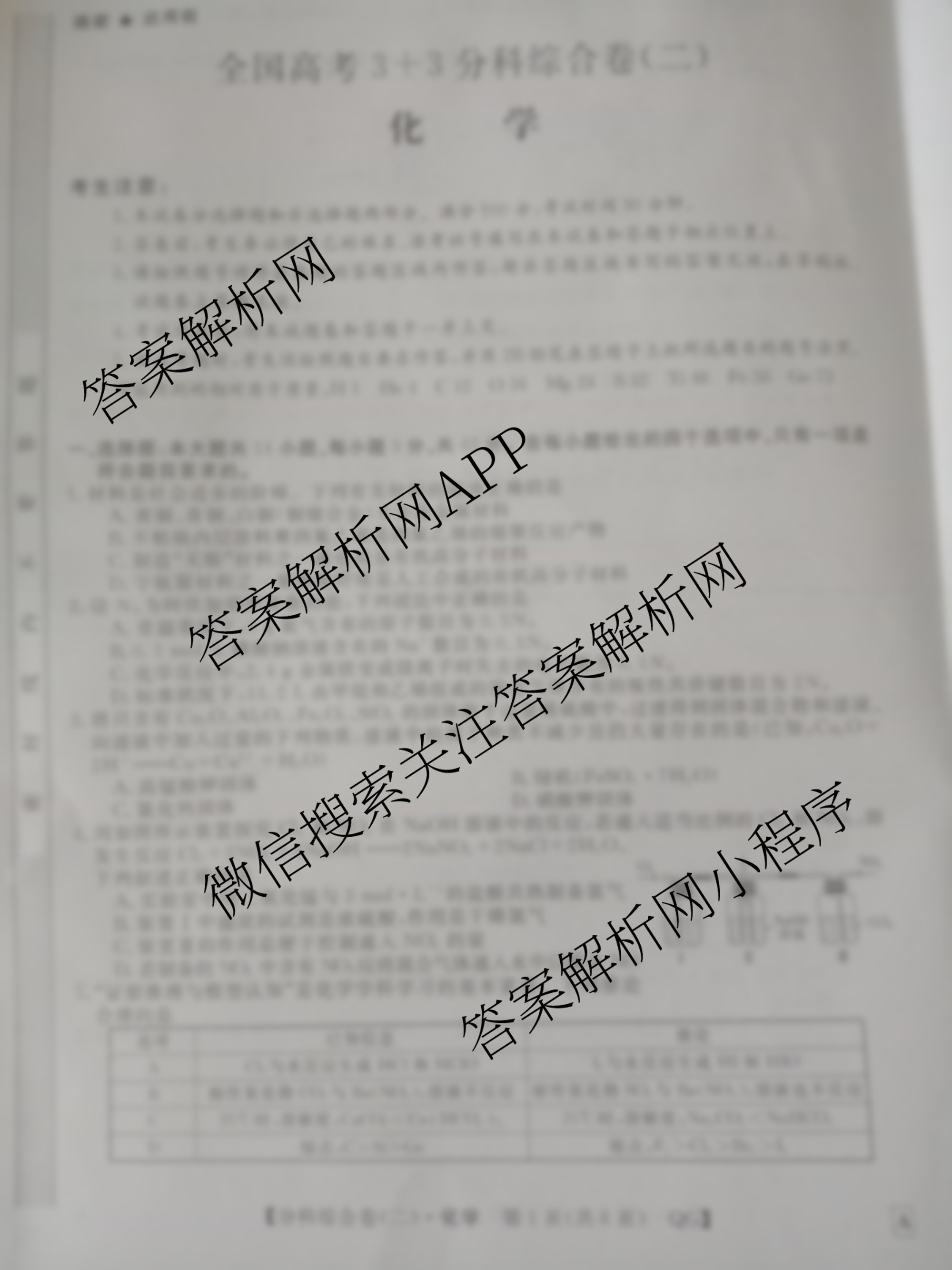 2024全国高考3+3分科综合卷 化学(QG A)(二)2试题由衡中同卷整理,获取更多3+3分科综合卷答案解析,请在各大应用商店搜索下载答案解析网APP。