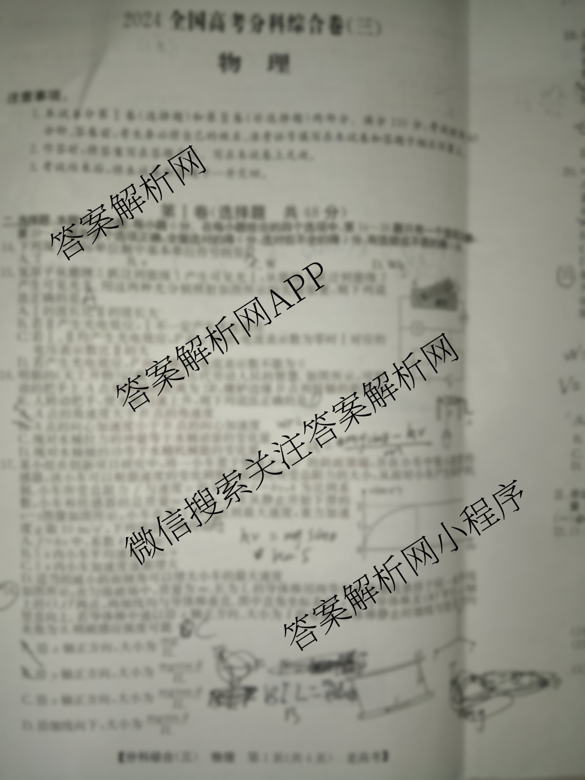 2024全国高考分科综合卷(三)3物理(老高考)试题由衡中同卷整理,获取更多全国高考分科综合卷答案解析,请在各大应用商店搜索下载答案解析网APP。
