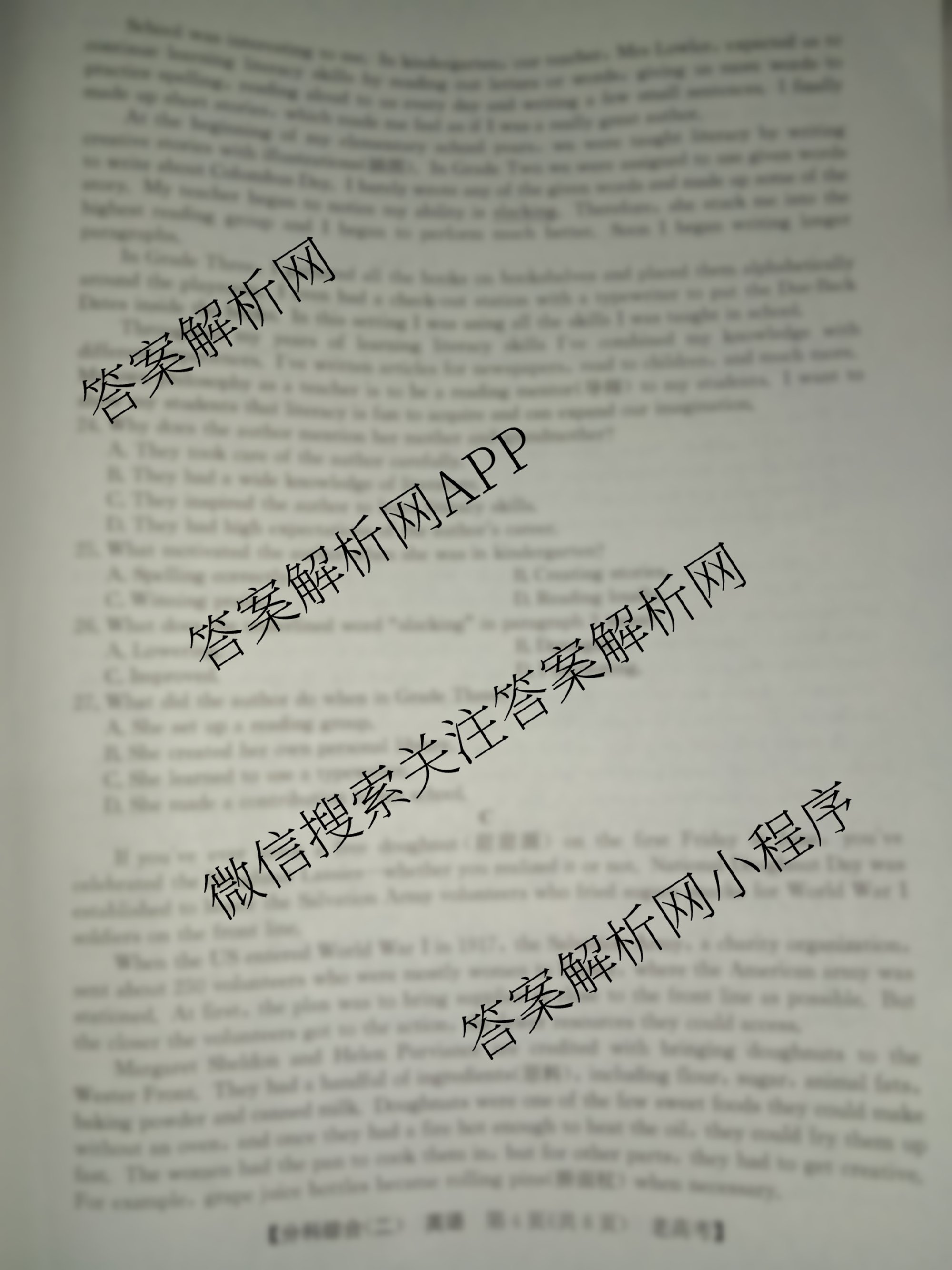 2024全国高考分科综合卷(二)2英语(老高考)试题由衡中同卷整理,获取更多全国高考分科综合卷答案解析,请在各大应用商店搜索下载答案解析网APP。