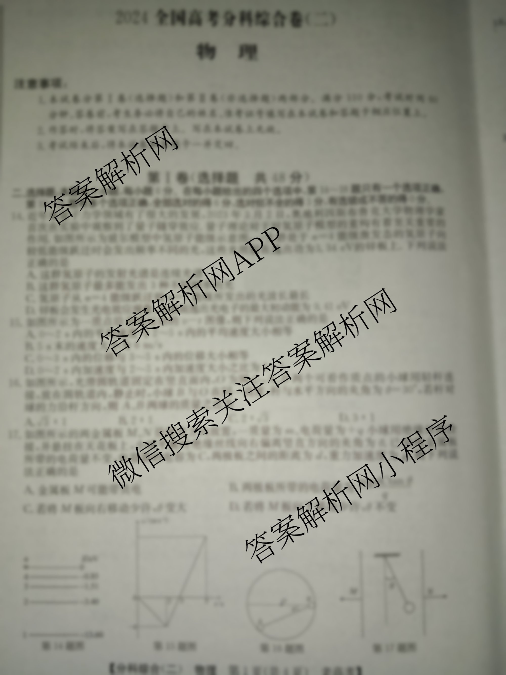 2024全国高考分科综合卷(二)2物理(老高考)试题由衡中同卷整理,获取更多全国高考分科综合卷答案解析,请在各大应用商店搜索下载答案解析网APP。