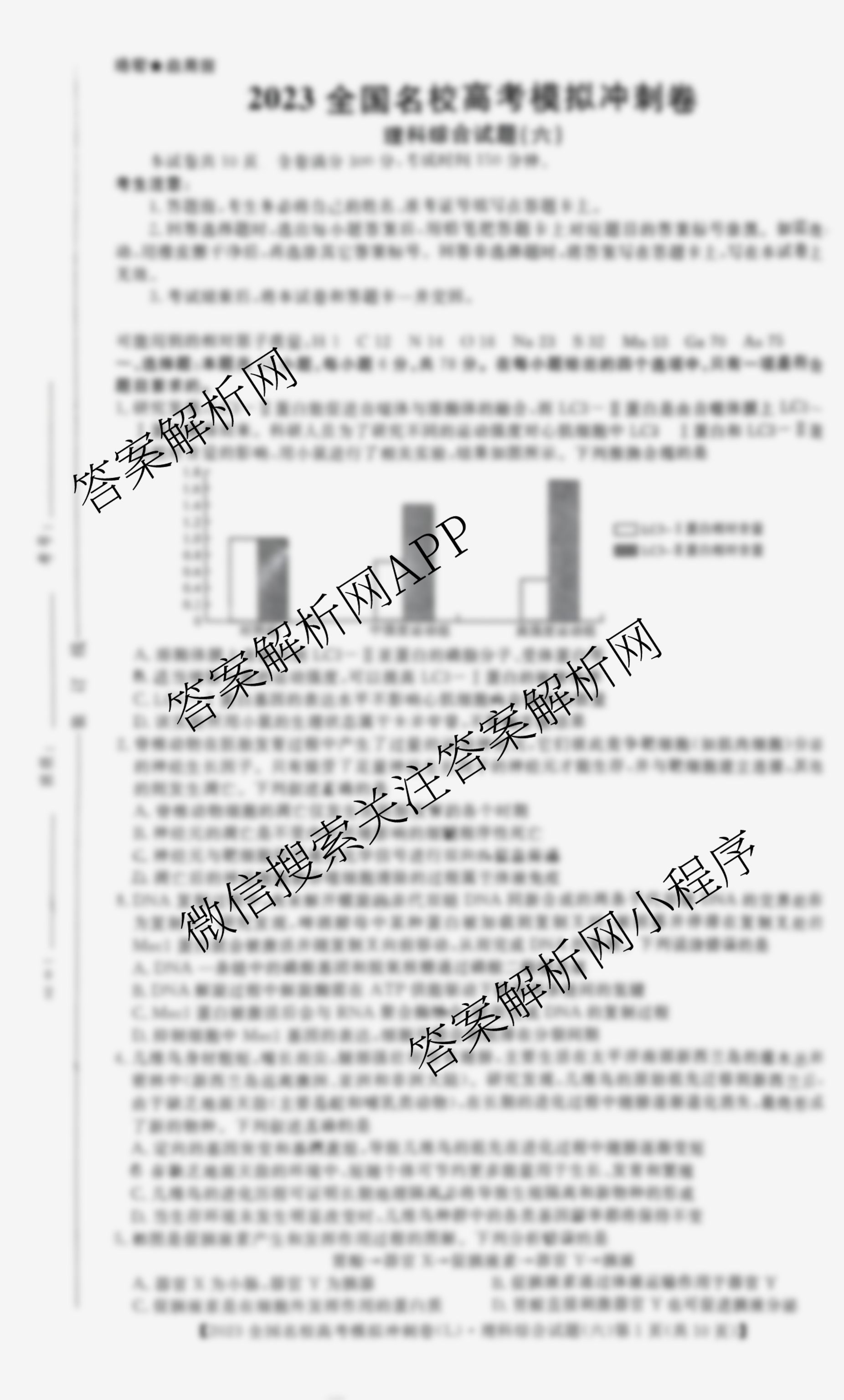 华普教育·2023全国名校高考模拟冲刺卷(六)6理综(L)试题由衡中同卷整理,获取更多华普教育答案解析,请在各大应用商店搜索下载答案解析网APP。