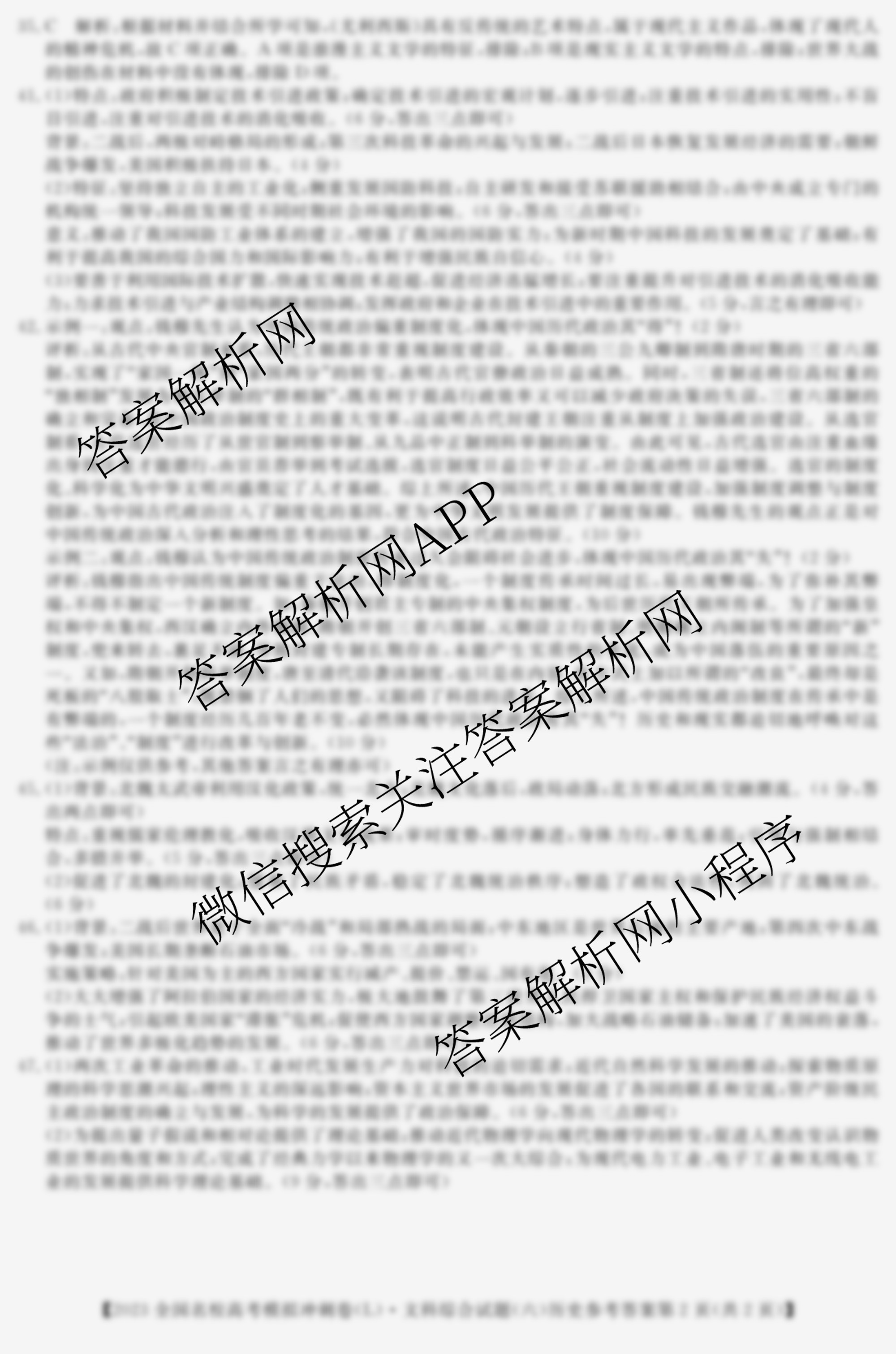 华普教育2023全国名校高考模拟冲刺卷(六)6文综(L)答案