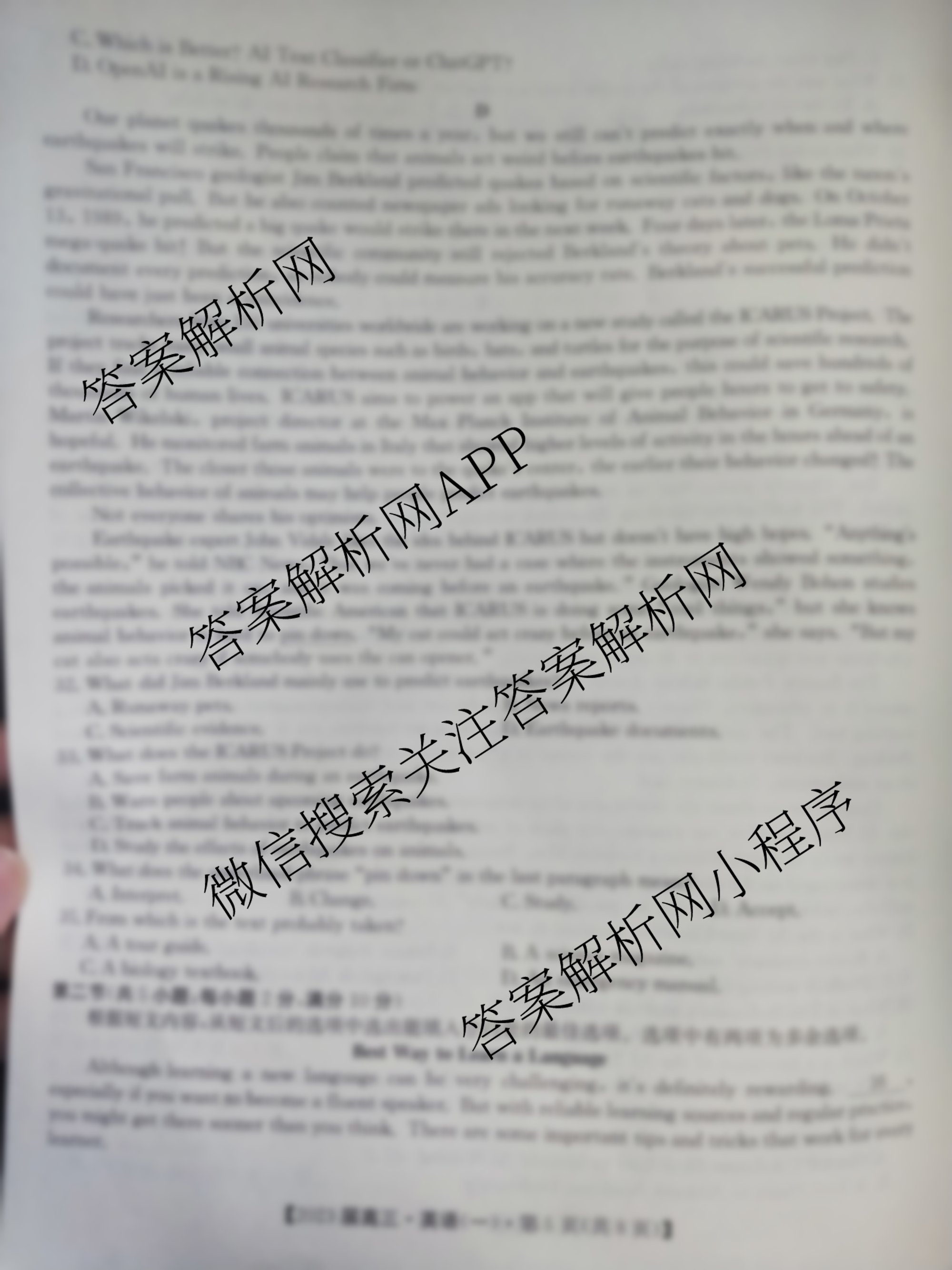 2023届北京专家信息卷 押题卷(一)1英语试题由衡中同卷整理,获取更多北京专家答案解析,请在各大应用商店搜索下载答案解析网APP。