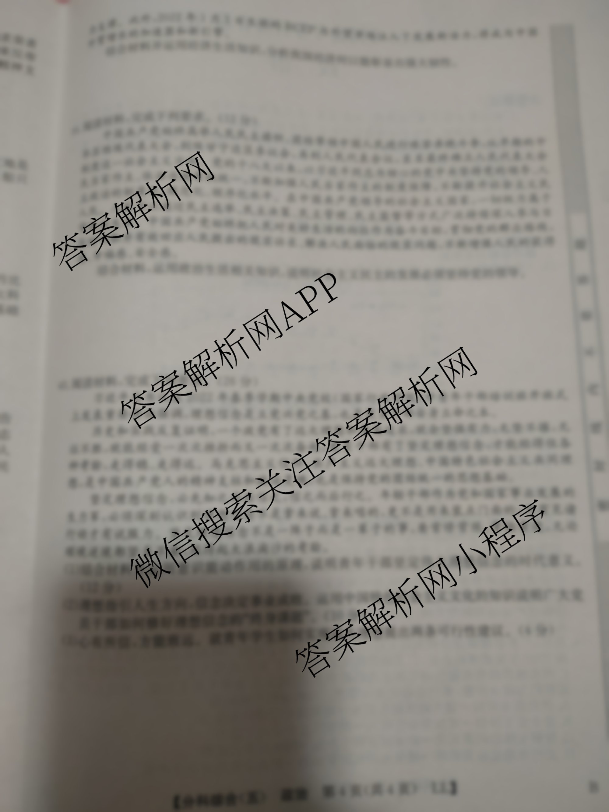 - 2023[全国高考分科综合卷] 政治 LL(五)5答案