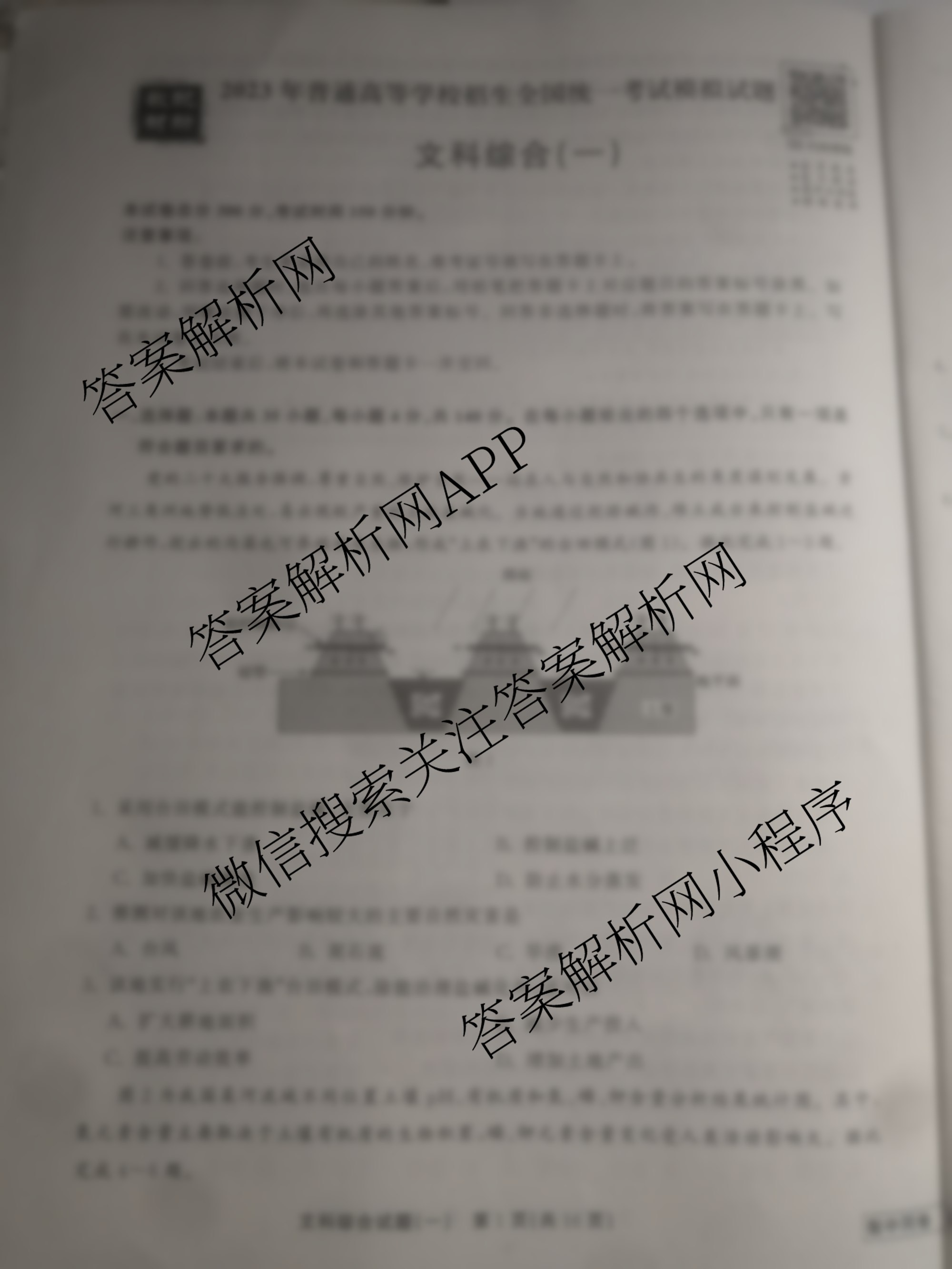 - 衡中同卷2023届 调研卷 全国卷A 文综(一)1试题
