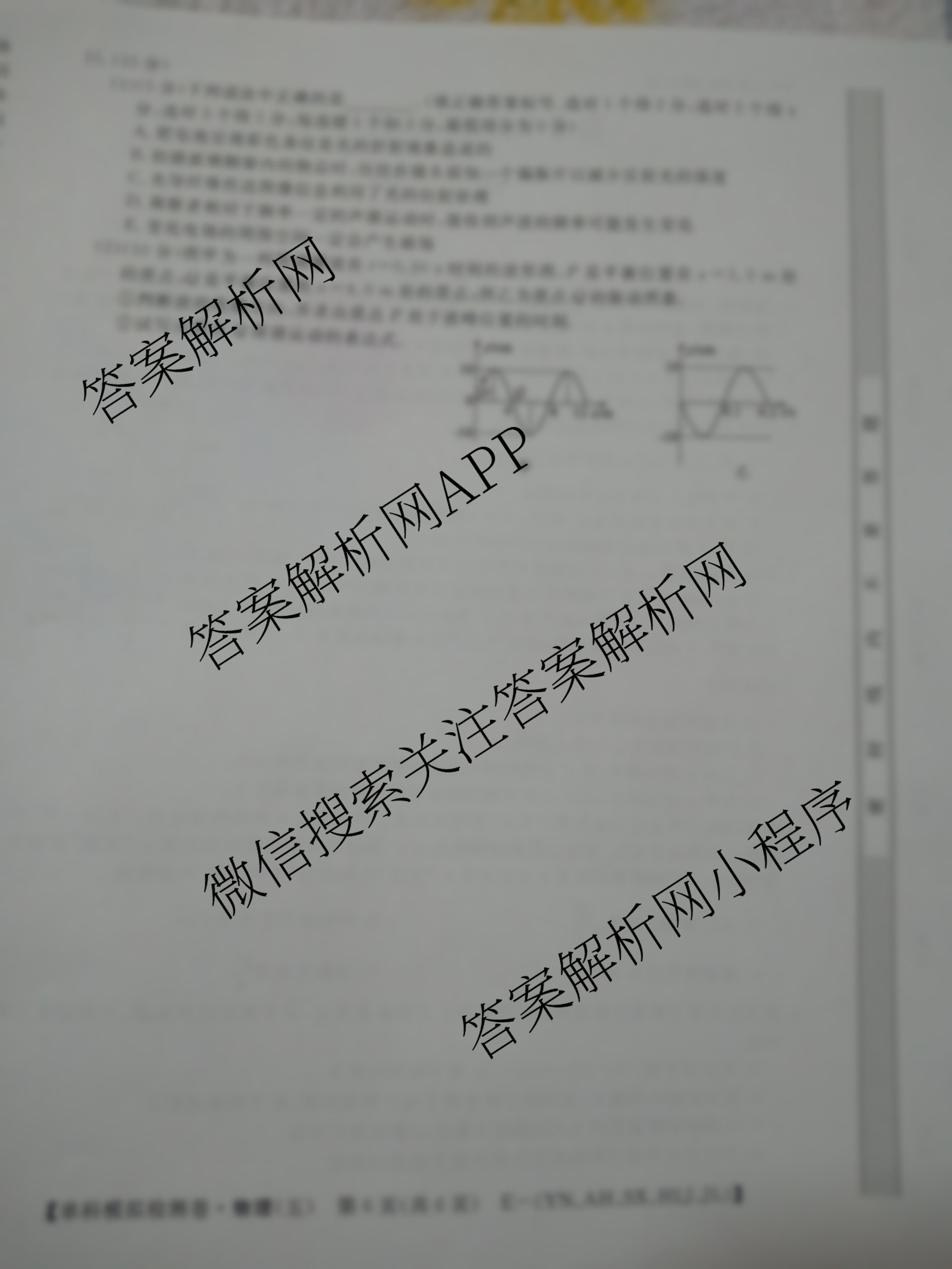 - 2023届[高考单科模拟检测卷]物理 (E-YN AH SX HLJ JL)(五)5答案