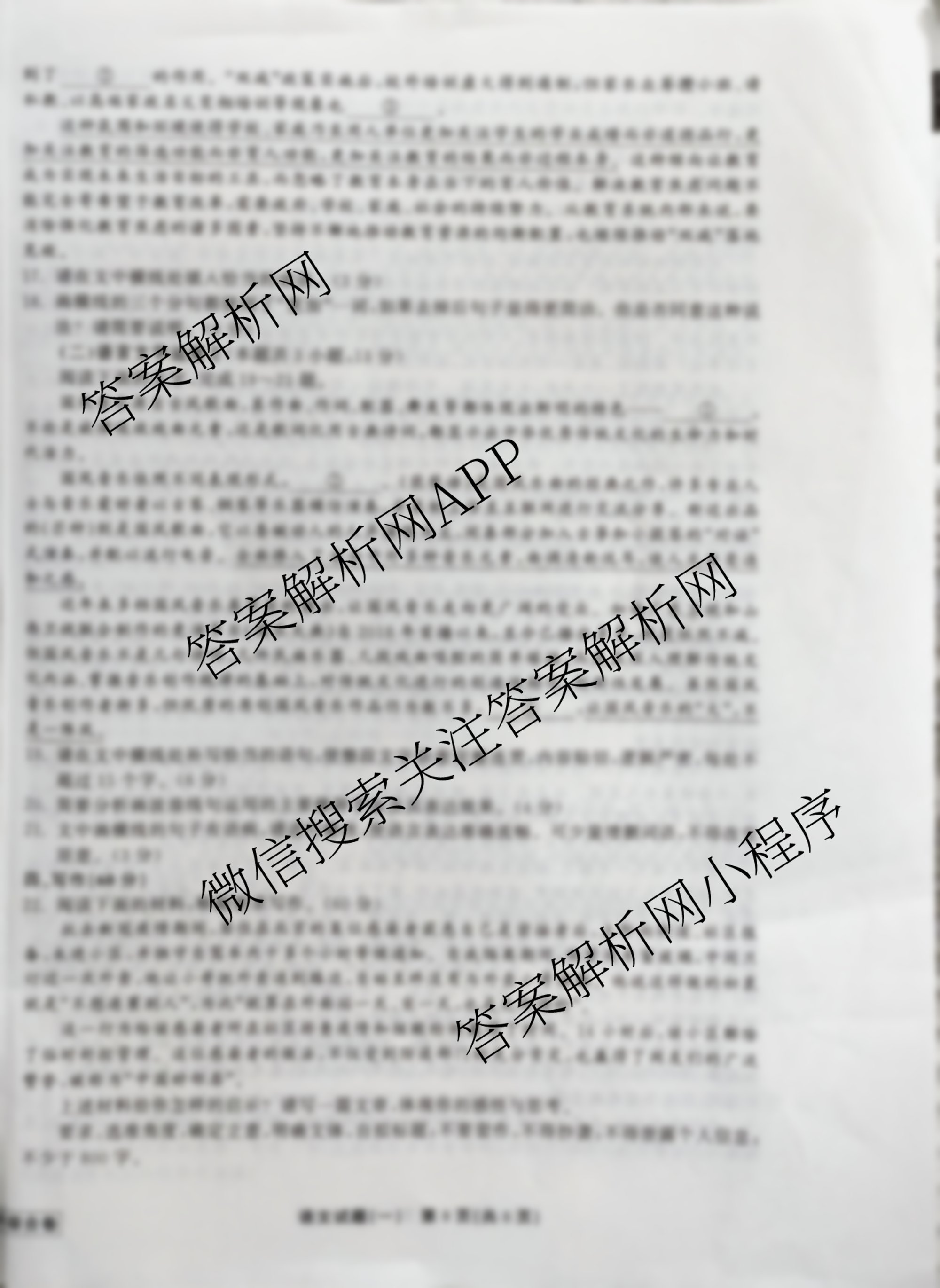- [高三](衡中同卷)2022~2023学年度高考分科综合测试卷 全国卷A 语文(一)1试题