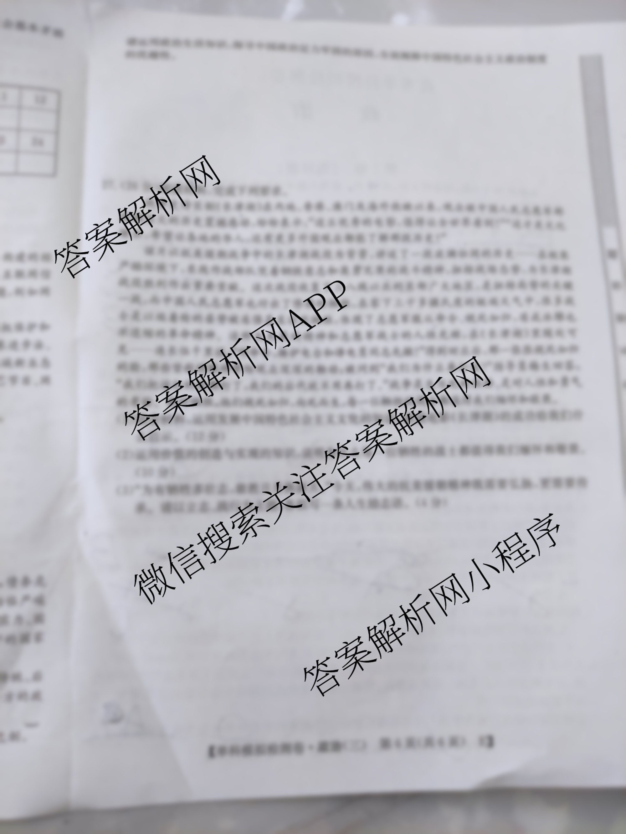 - [高三]2023届(高考单科模拟检测卷)政治 (E-YN AH SX HLJ JL)(三)3试题