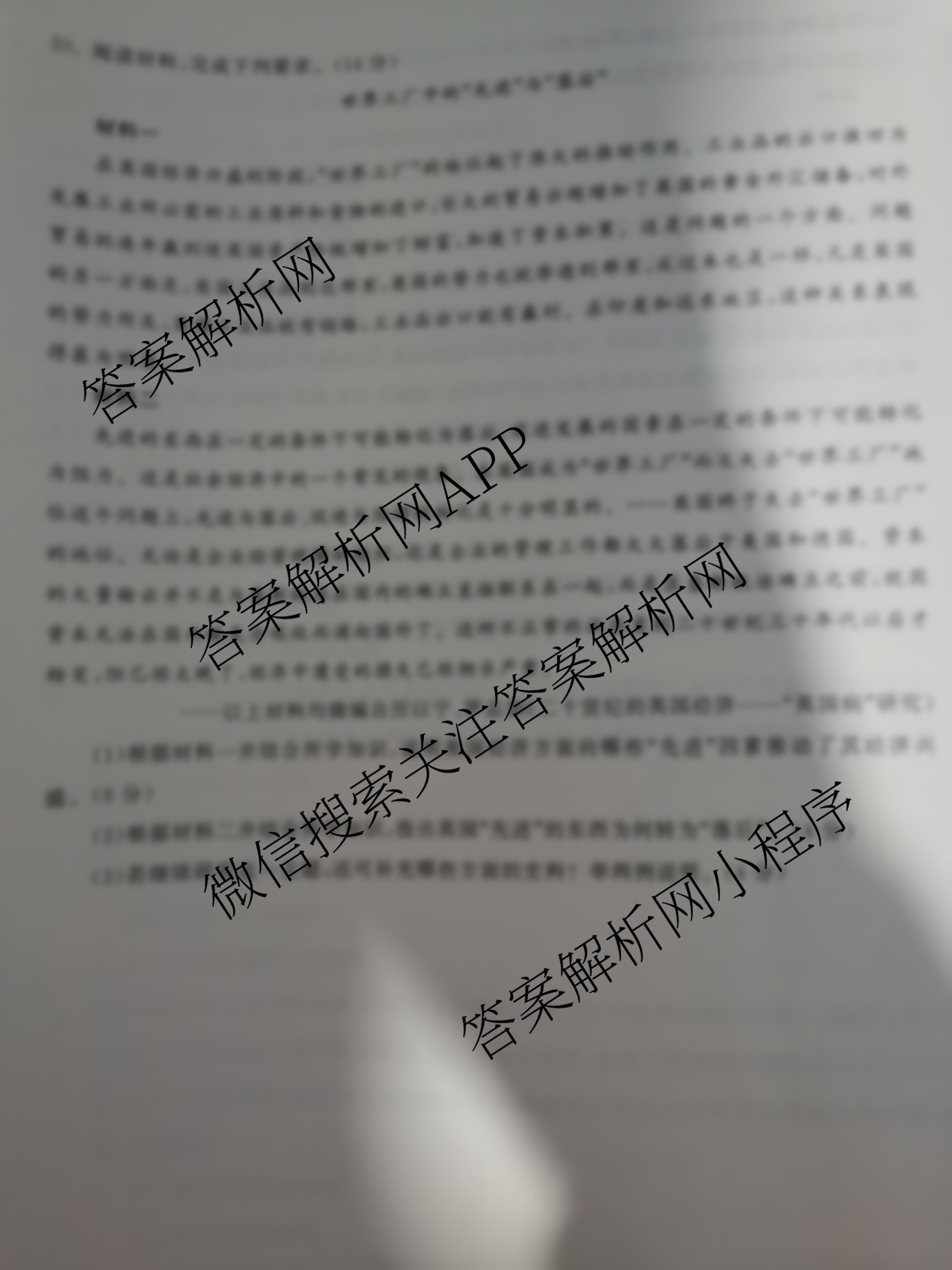 - [衡中同卷]2023届 调研卷 全国卷B 文综(一)1答案