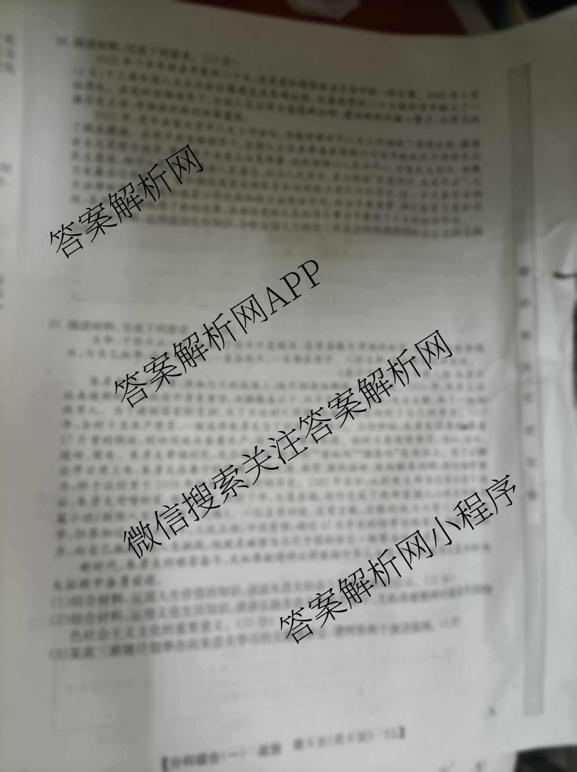 - [高三]2023[全国高考分科综合卷] 政治 LLA(一)1答案