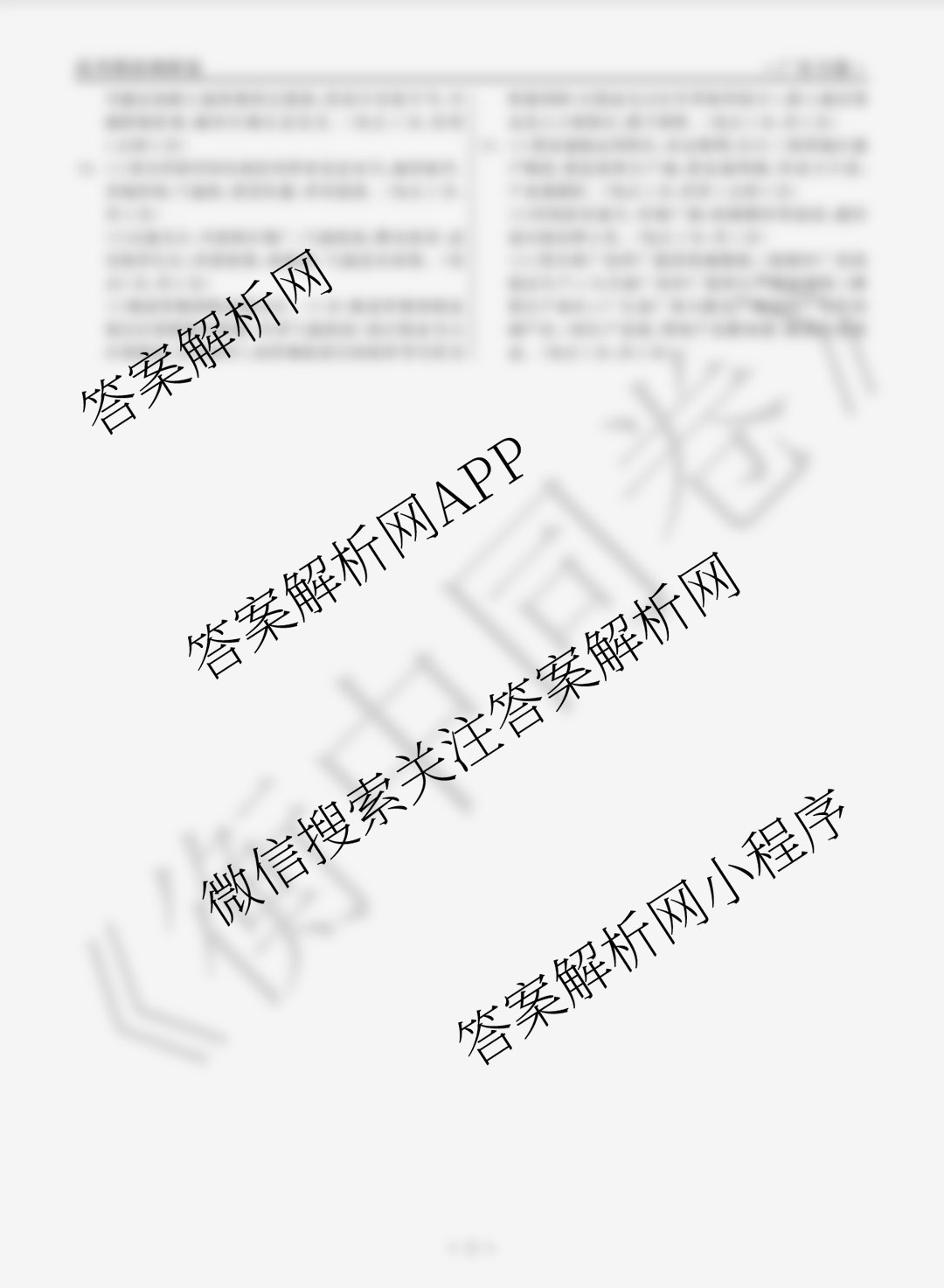 - (衡中同卷)2023届 调研卷 全国卷A 文综(一)1答案