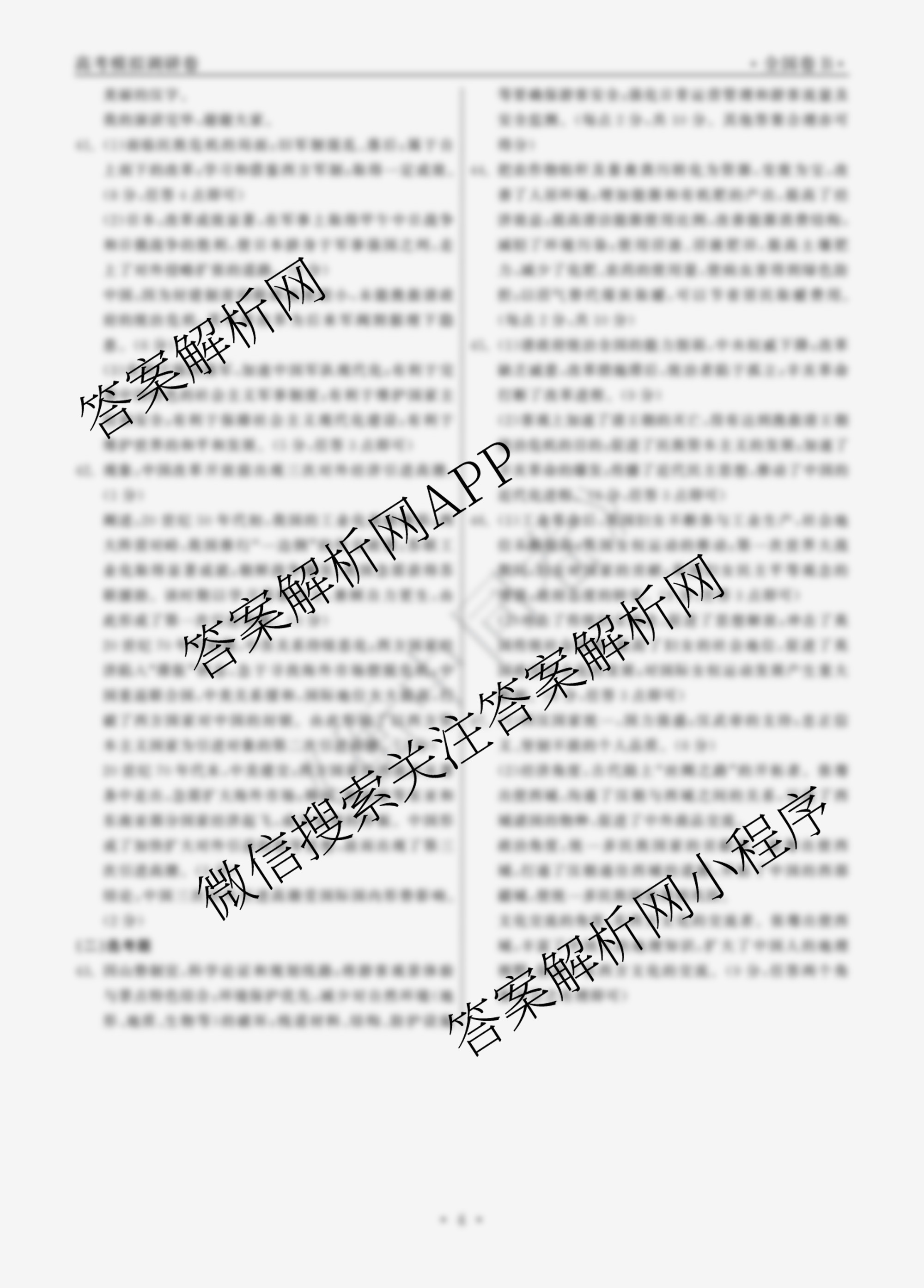 - 2023届(衡中同卷)· 调研卷 全国卷A 文综(四)4答案