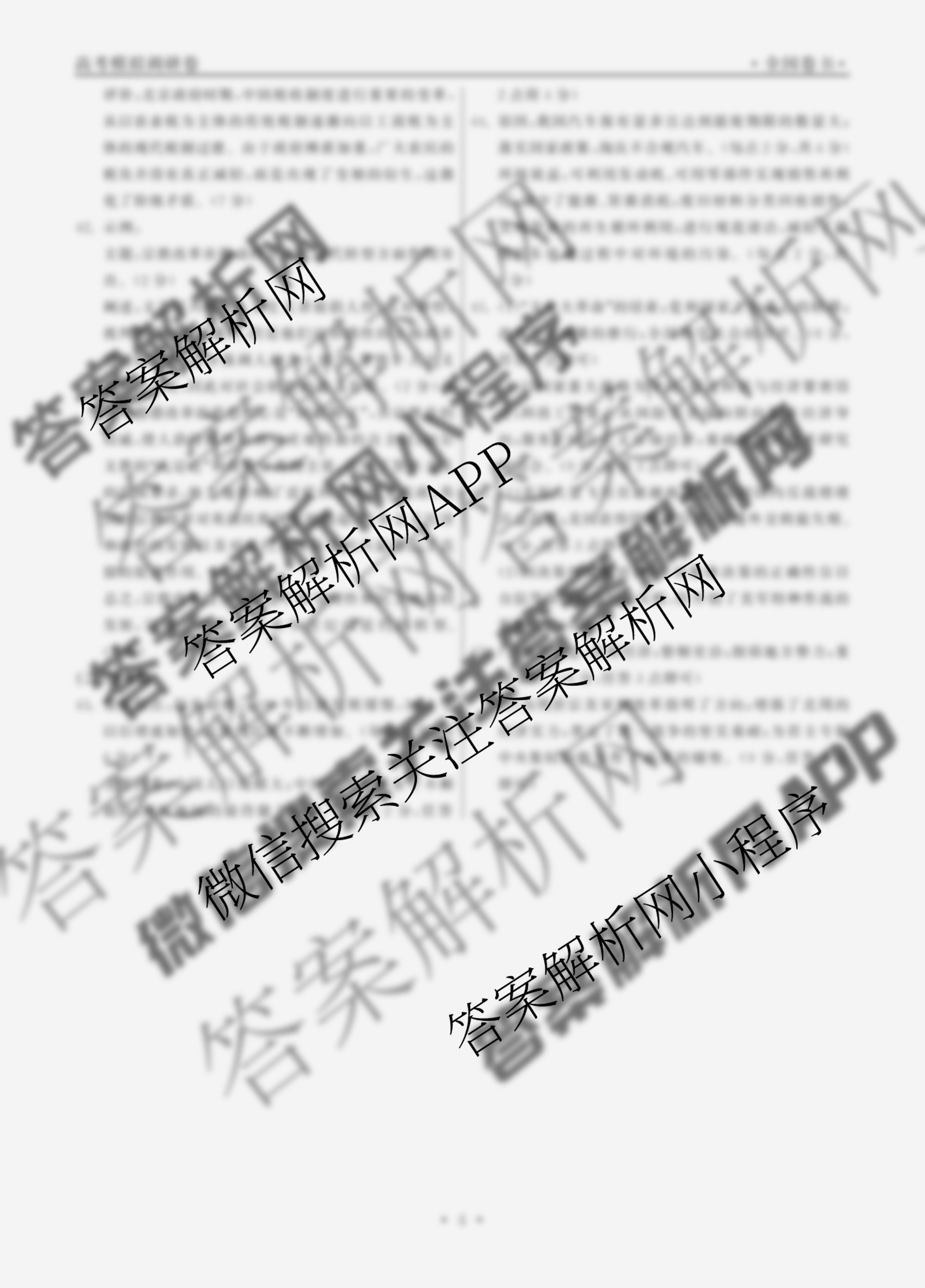 - (衡中同卷)2023届 调研卷 全国卷B 文综(二)2答案