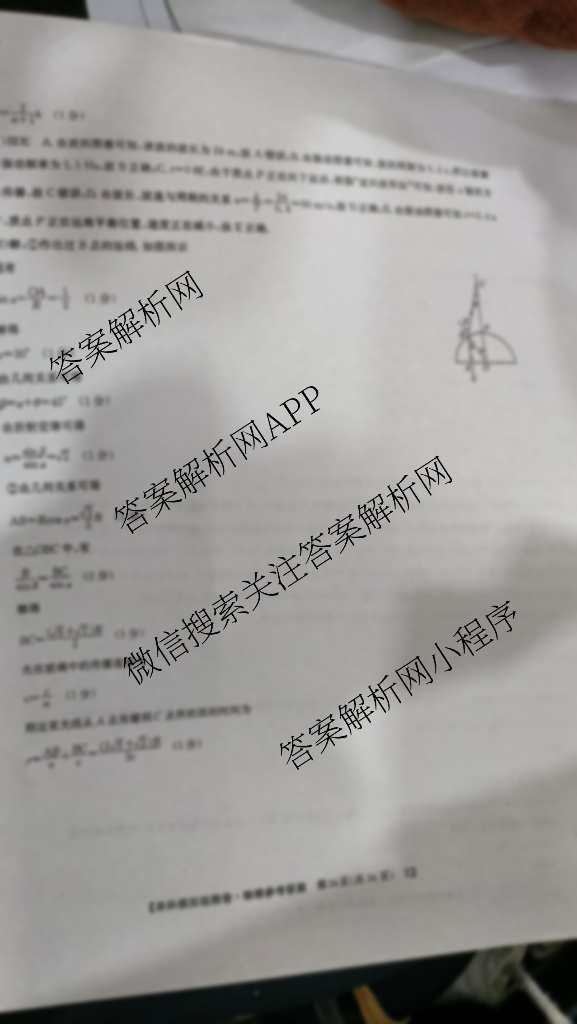 - (高三)2023届[高考单科模拟检测卷]物理 (E-YN AH SX HLJ JL)(六)6答案