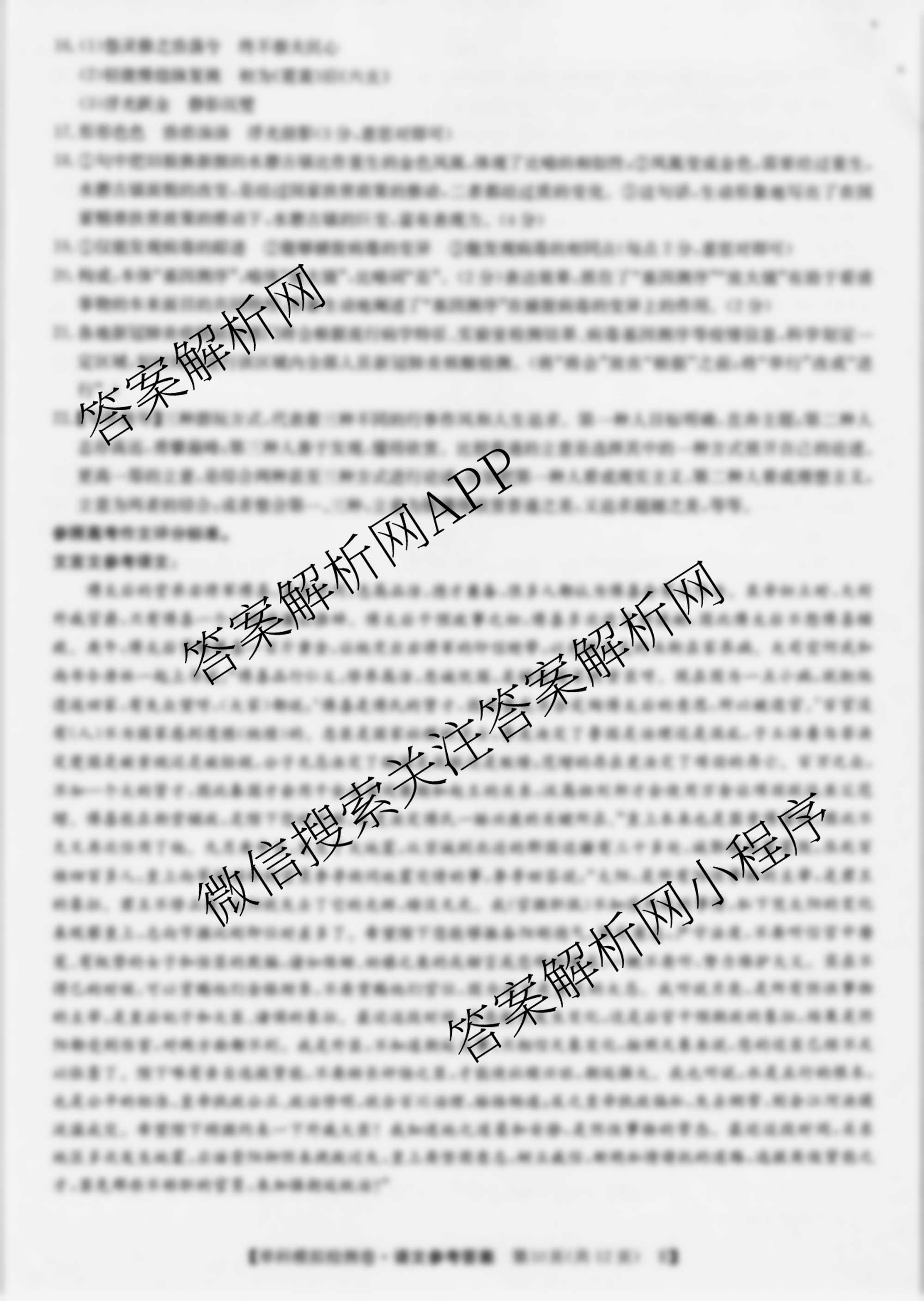 - [高三]2023届(高考单科模拟检测卷)语文 (E-YN AH SX HLJ JL)(五)5答案