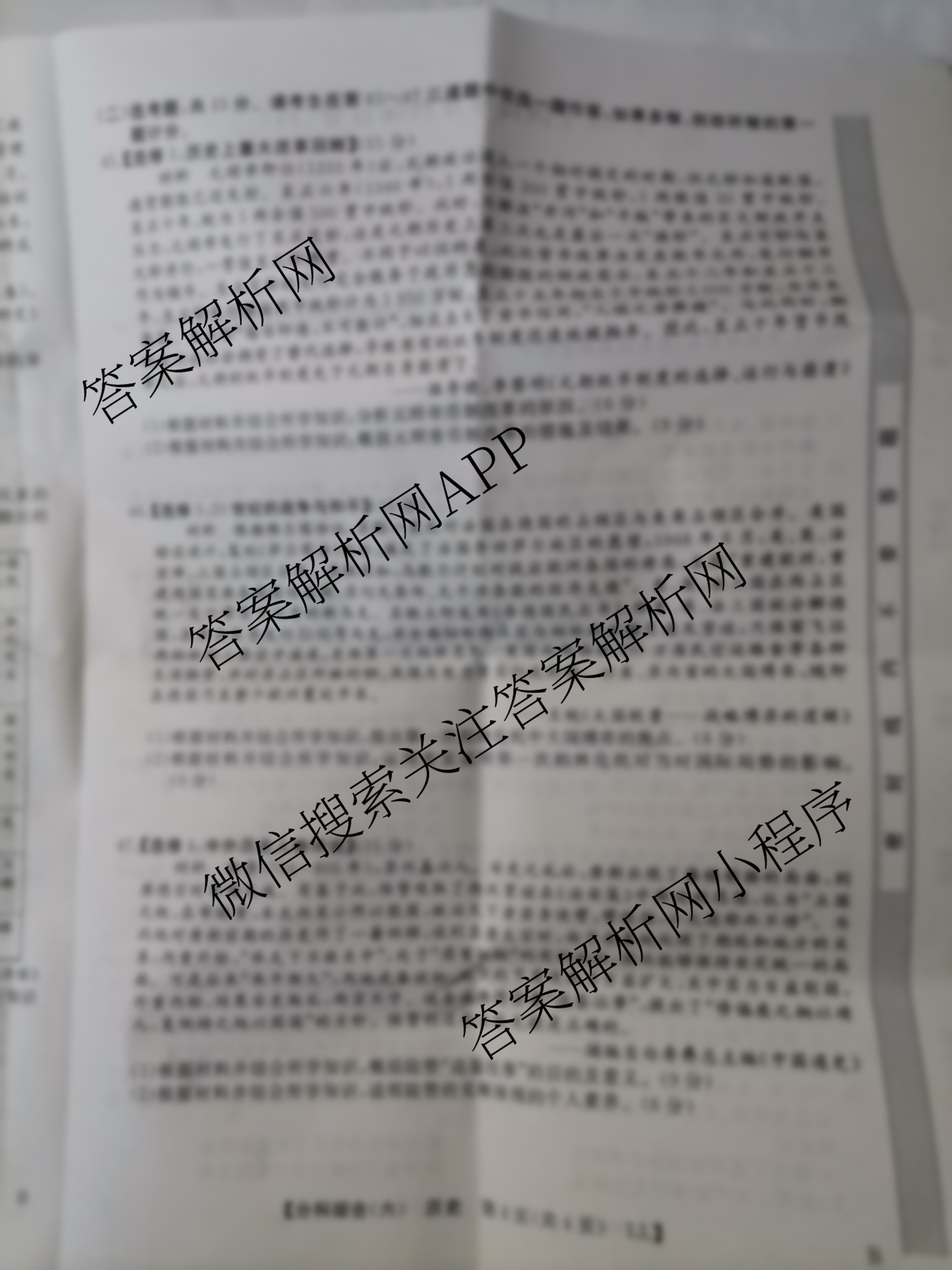 - 2023[全国高考分科综合卷] 历史 XL(六)6试题