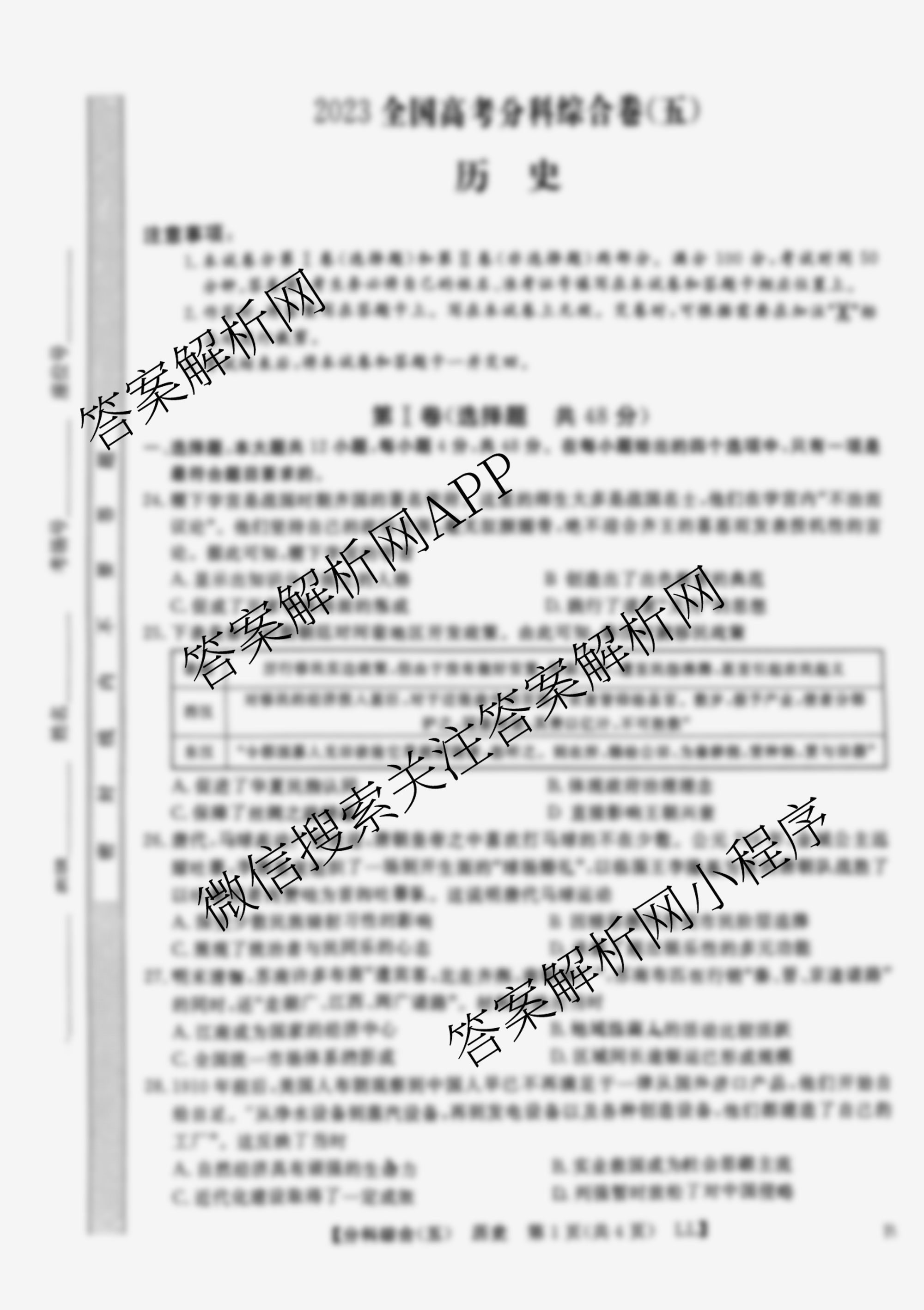 2023[全国高考分科综合卷] 历史 LL B(五)5试题