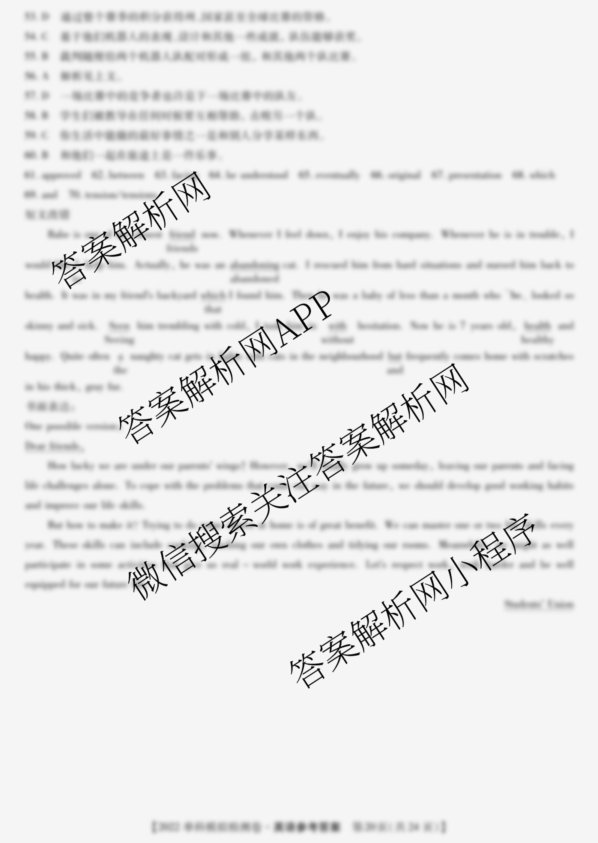 2022届高考单科模拟检测卷(五)英语答案由衡中同卷整理,获取更多高考单科模拟检测卷答案解析,请在各大应用商店搜索下载答案解析网APP。