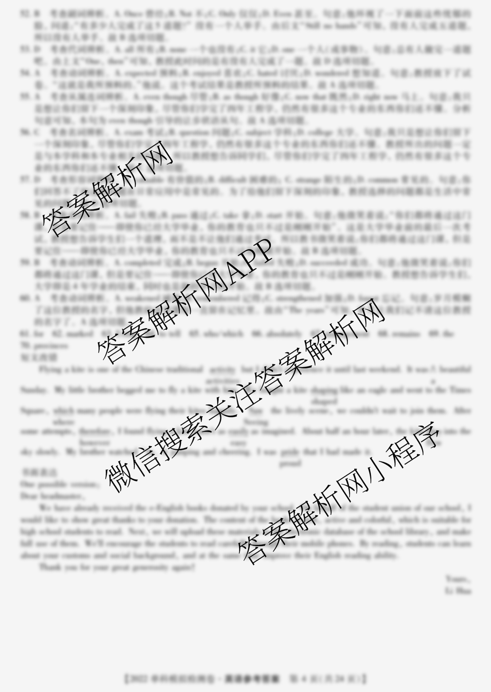 2022届高考单科模拟检测卷(一)英语答案由衡中同卷整理,获取更多高考单科模拟检测卷答案解析,请在各大应用商店搜索下载答案解析网APP。
