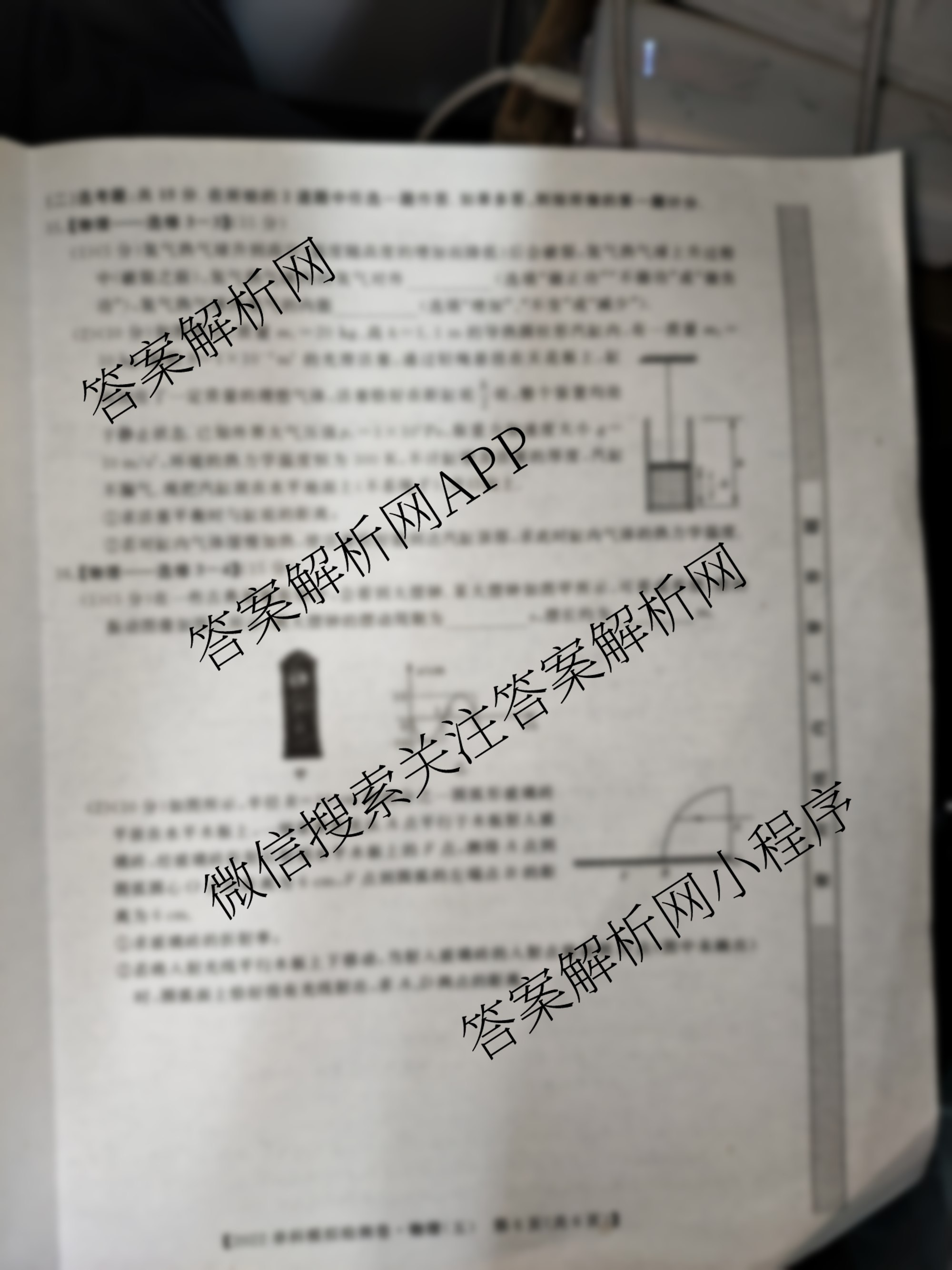 - [高三]2022届[高考单科模拟检测卷](五)物理答案
