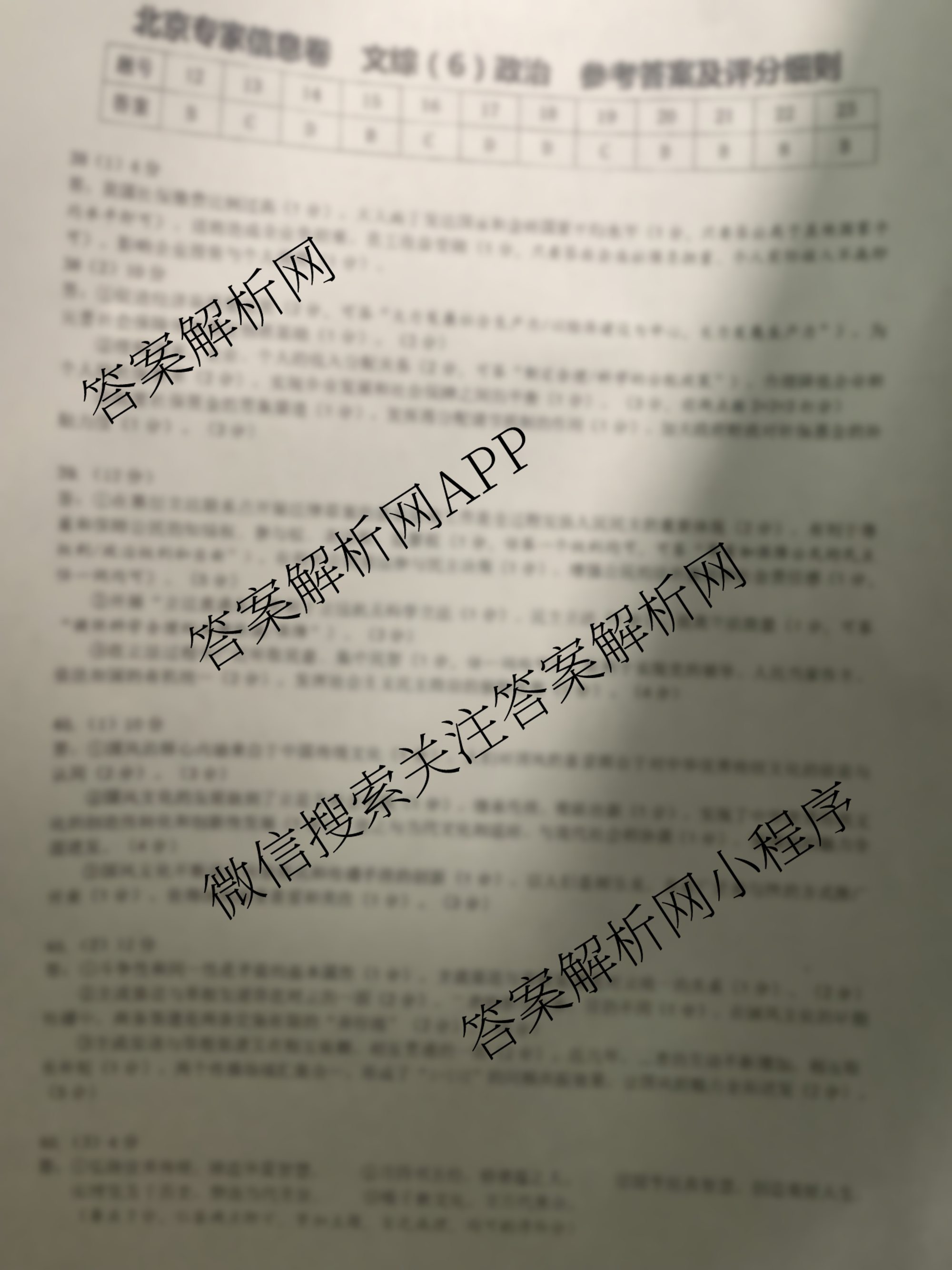 - (高三)2022届[北京专家]信息卷 年级月考仿真模拟卷(6)文综·政治答案