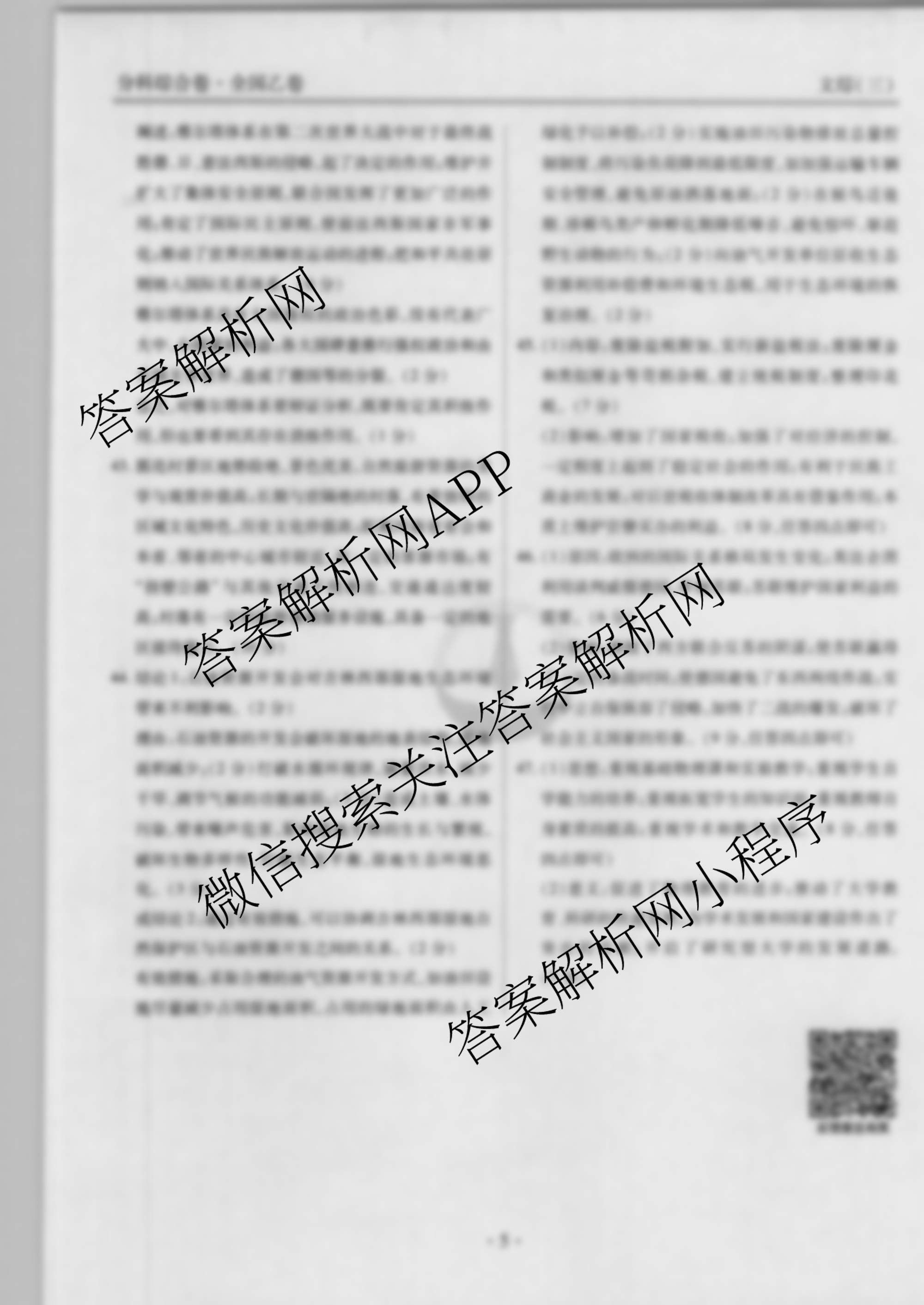 - 2022届(衡水金卷先享题) 分科综合卷 全国甲卷 文综(三)3答案