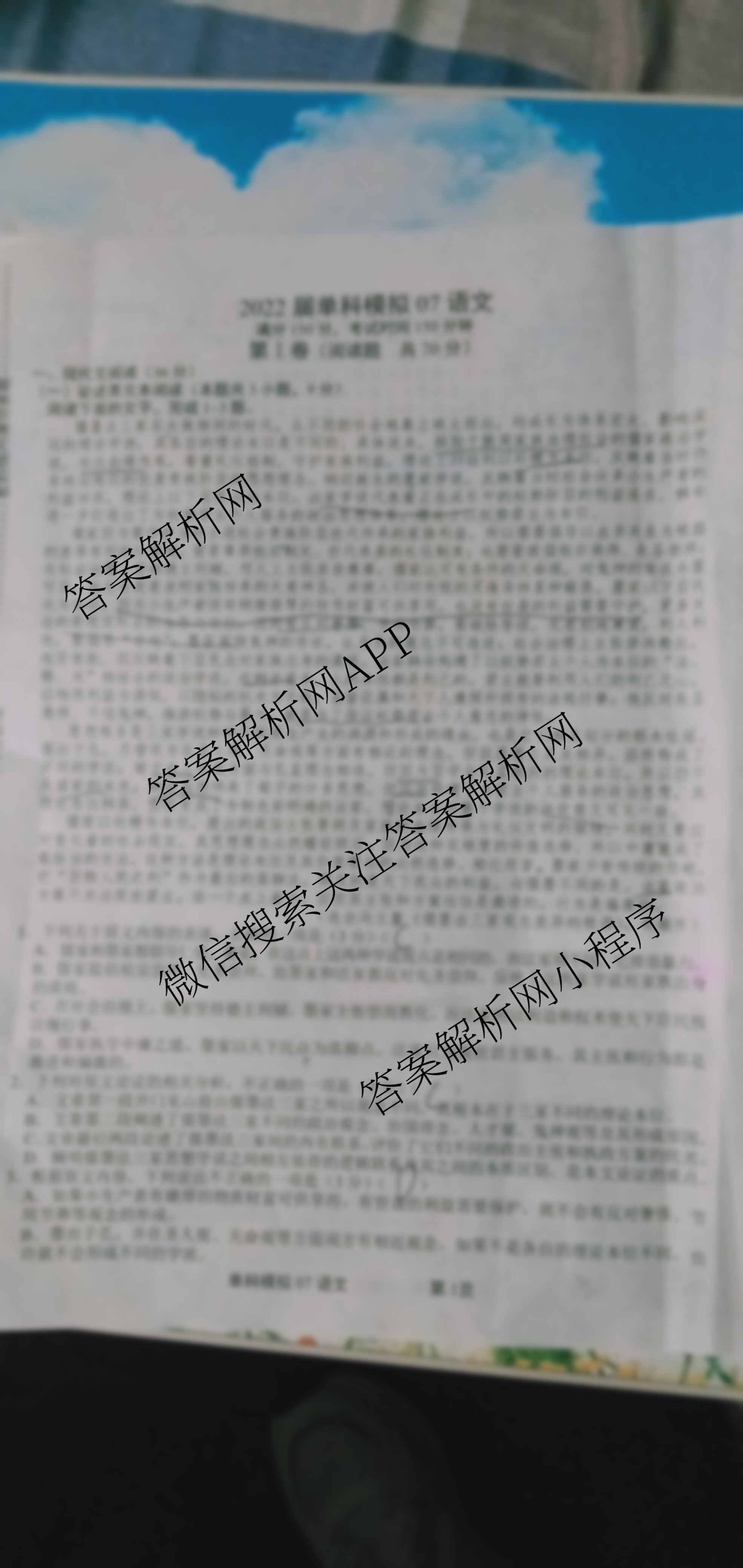 2022届单科模拟07语文试题由衡中同卷整理,获取更多单科模拟0x答案解析,请在各大应用商店搜索下载答案解析网APP。
