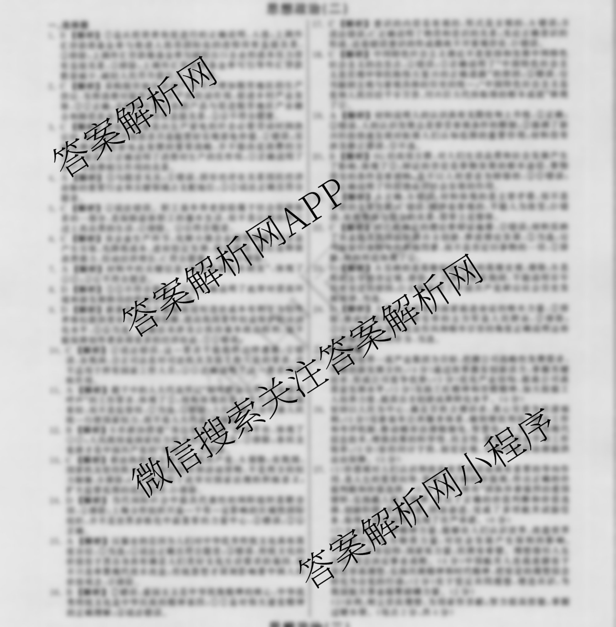- 2021~2022[衡中同卷]·学年度高考分科综合测试卷 政治 全国乙卷(二)答案
