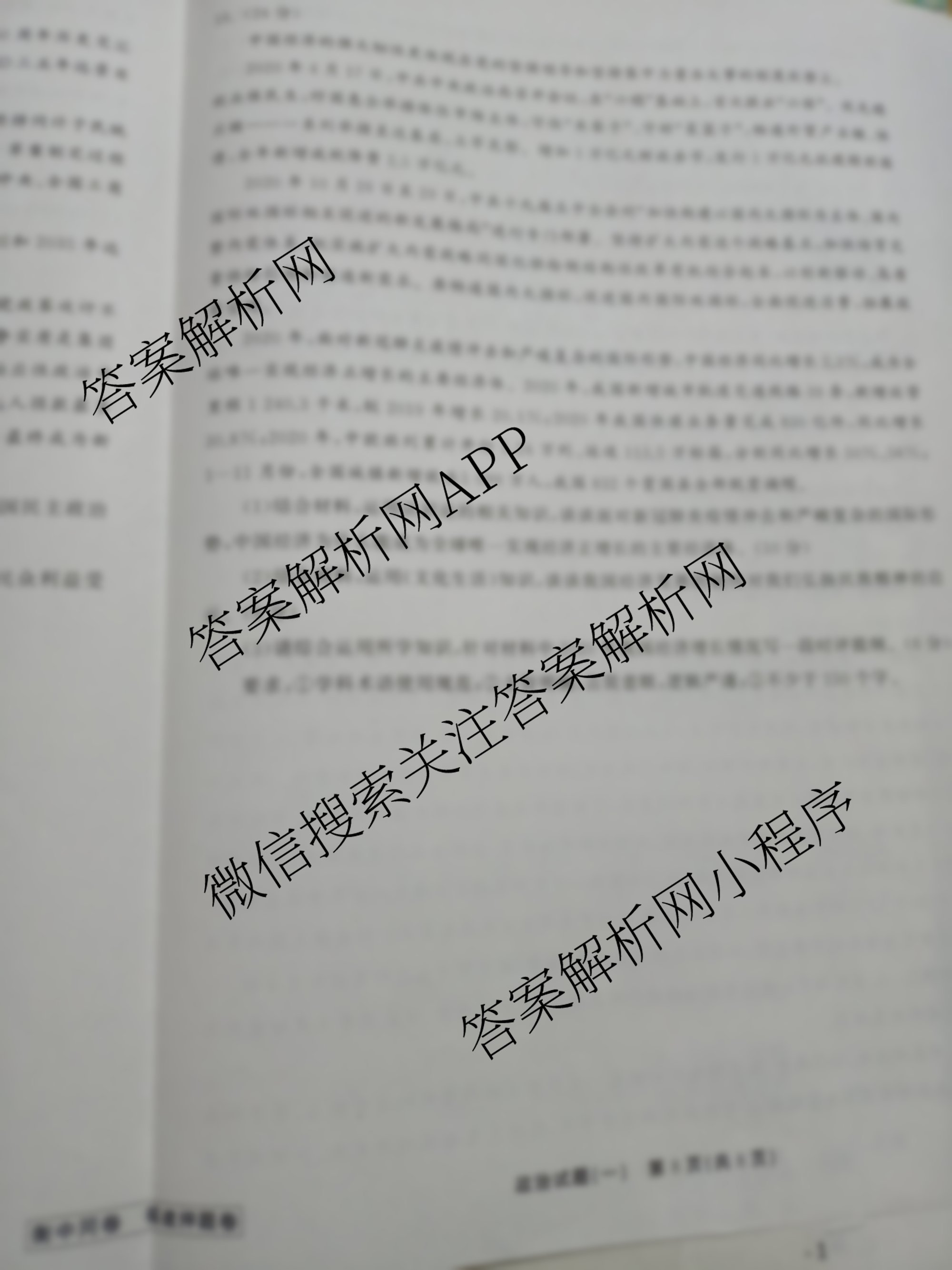 - (高三)2021届(衡中同卷) 河北押题卷 政治(一)1答案