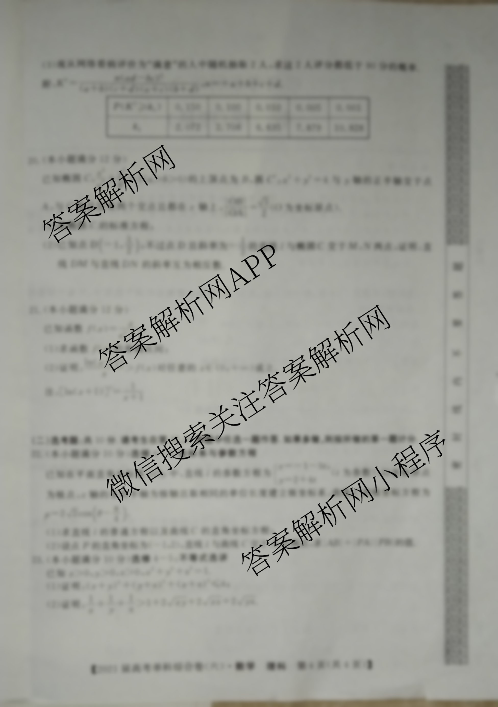 2021届高考单科综合卷(六)理科数学试题由衡中同卷整理,获取更多高考单科综合卷答案解析,请在各大应用商店搜索下载答案解析网APP。