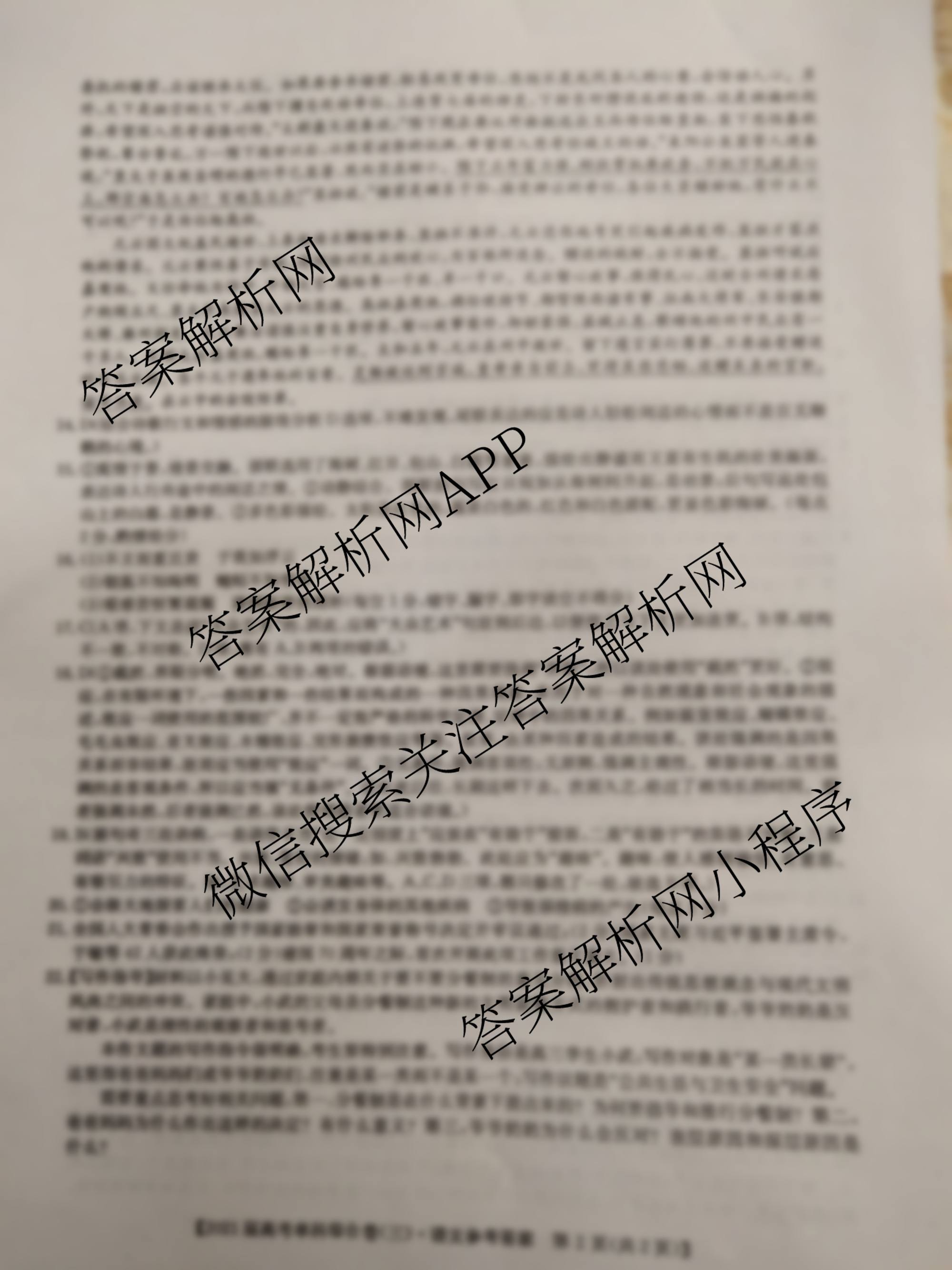 2021届高考单科综合卷(三)语文答案由衡中同卷整理,获取更多高考单科综合卷答案解析,请在各大应用商店搜索下载答案解析网APP。