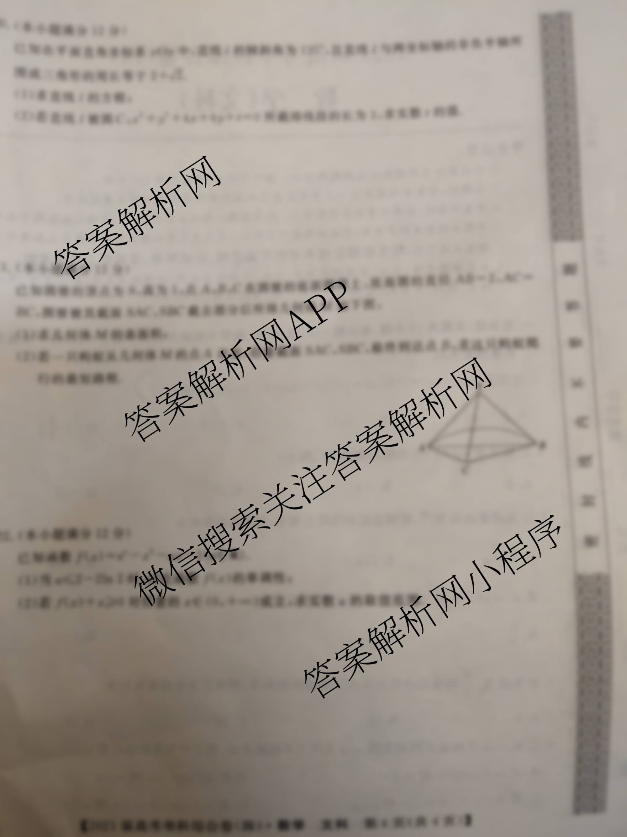 2021届高考单科综合卷(四)文科数学试题由衡中同卷整理,获取更多高考单科综合卷答案解析,请在各大应用商店搜索下载答案解析网APP。