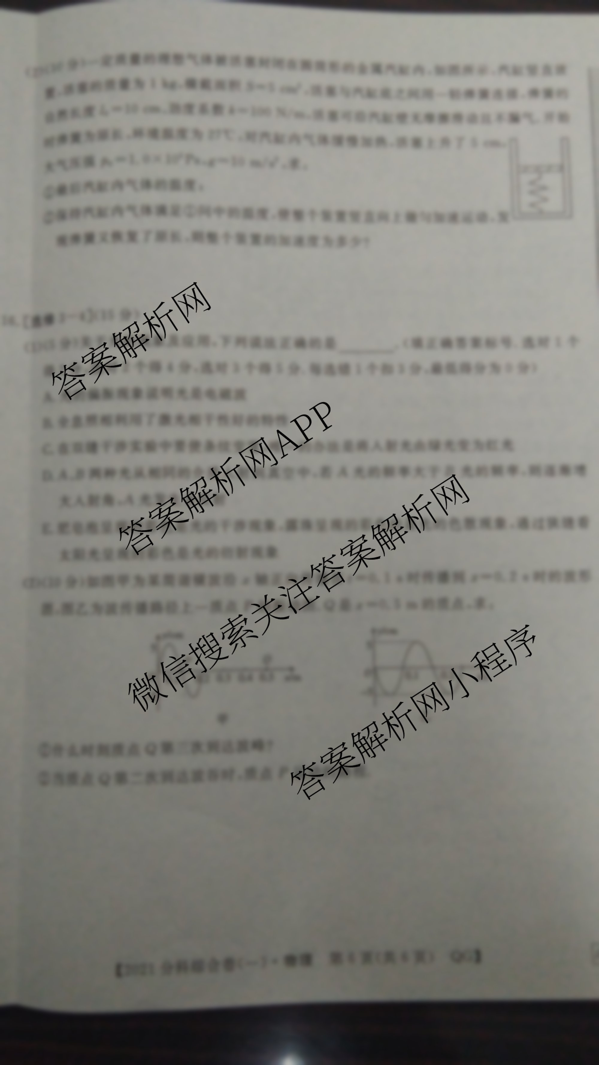 2021全国高考3+3分科综合卷(一)物理试题由衡中同卷整理,获取更多3+3分科综合卷答案解析,请在各大应用商店搜索下载答案解析网APP。