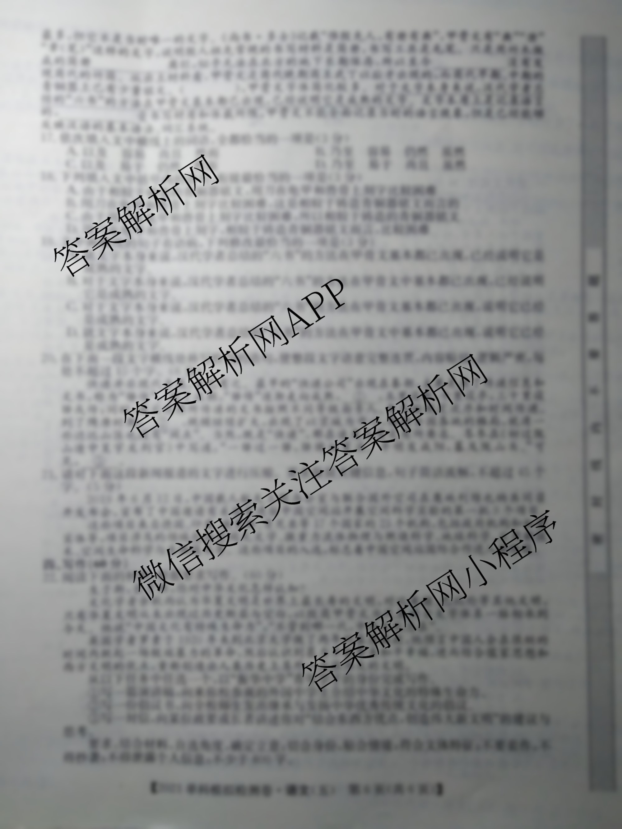 2021届高考单科模拟检测卷(五)语文试题由衡中同卷整理,获取更多高考单科模拟检测卷答案解析,请在各大应用商店搜索下载答案解析网APP。