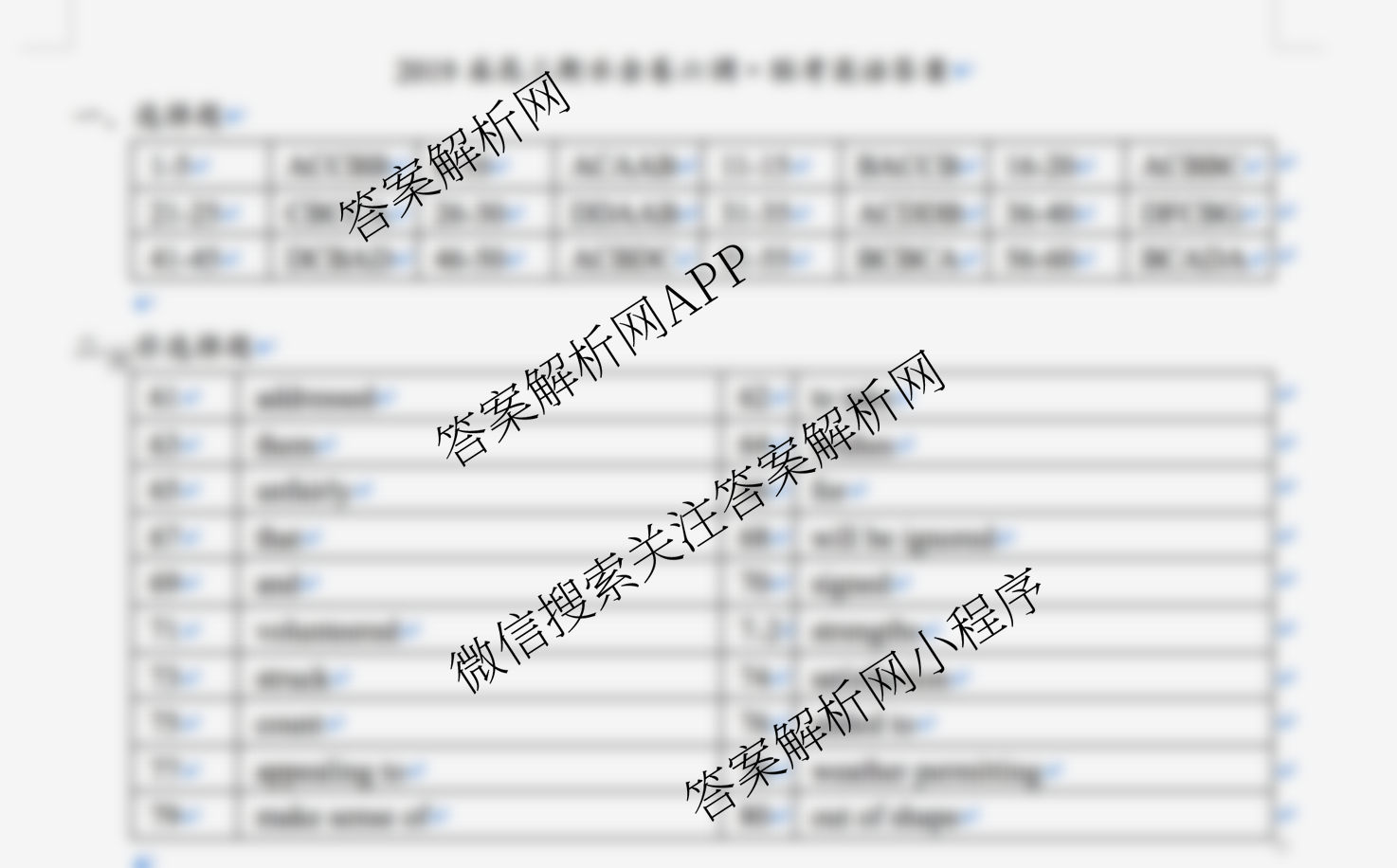 2019届高三衡水金卷六调联考卷英语答案由衡中同卷整理,获取更多衡水金卷答案解析,请在各大应用商店搜索下载答案解析网APP。