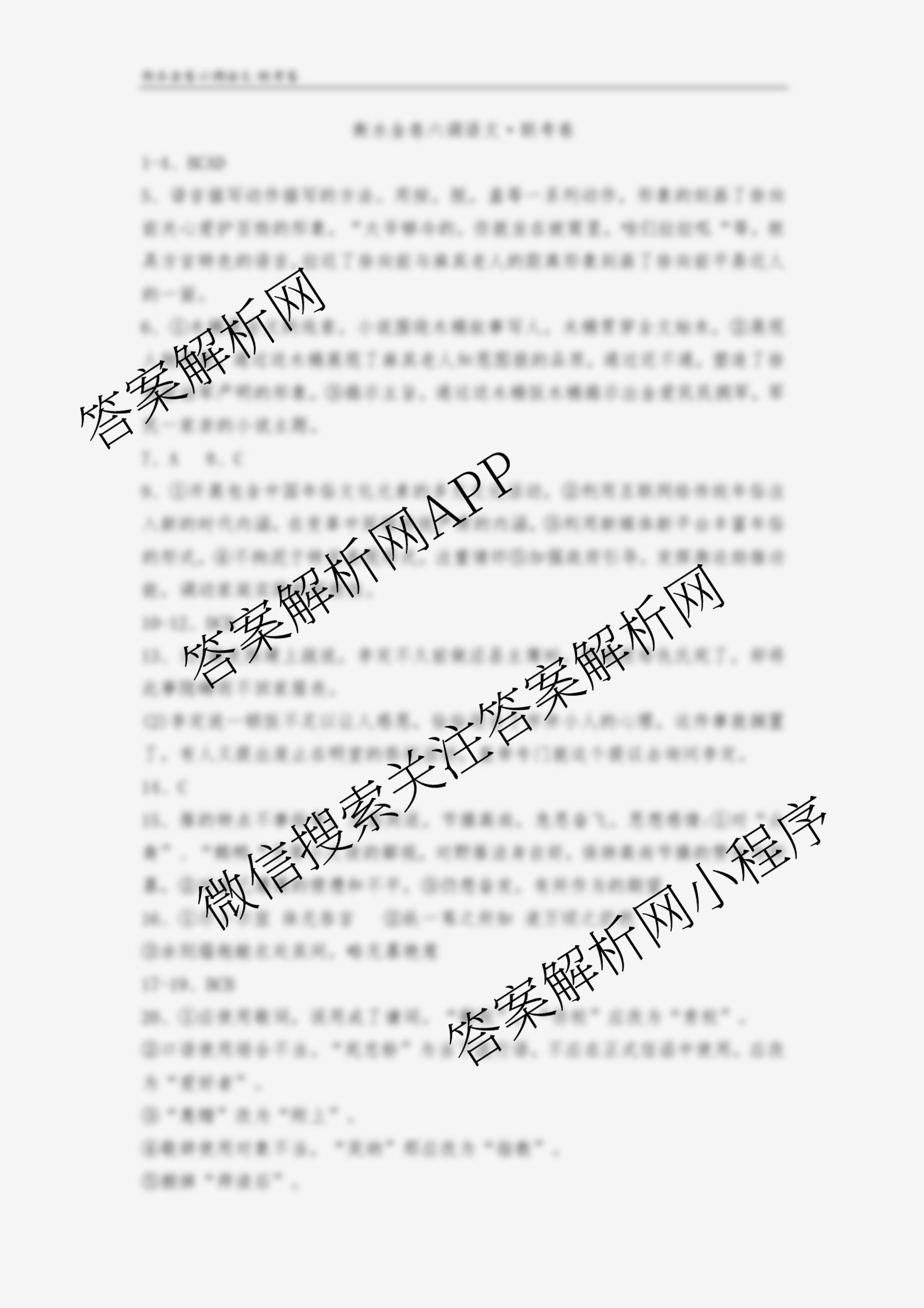 2019届高三衡水金卷六调联考卷语文答案由衡中同卷整理,获取更多衡水金卷答案解析,请在各大应用商店搜索下载答案解析网APP。
