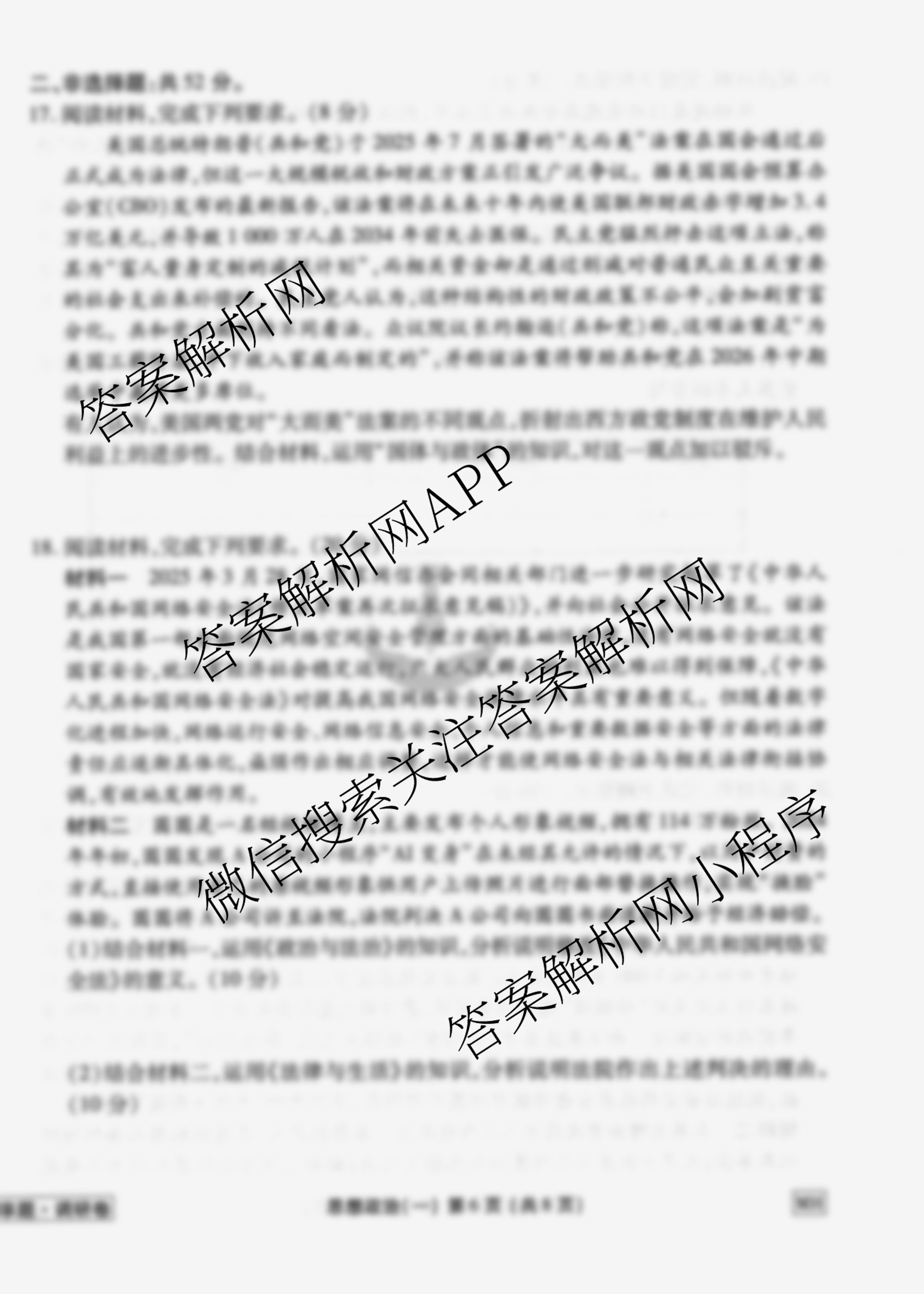 衡水金卷先享题·调研卷·2026年普通高中学业水平选择性考试模拟(一)1政治(MH)试题由衡中同卷整理,获取更多衡水金卷先享题答案解析,请在各大应用商店搜索下载答案解析网APP。