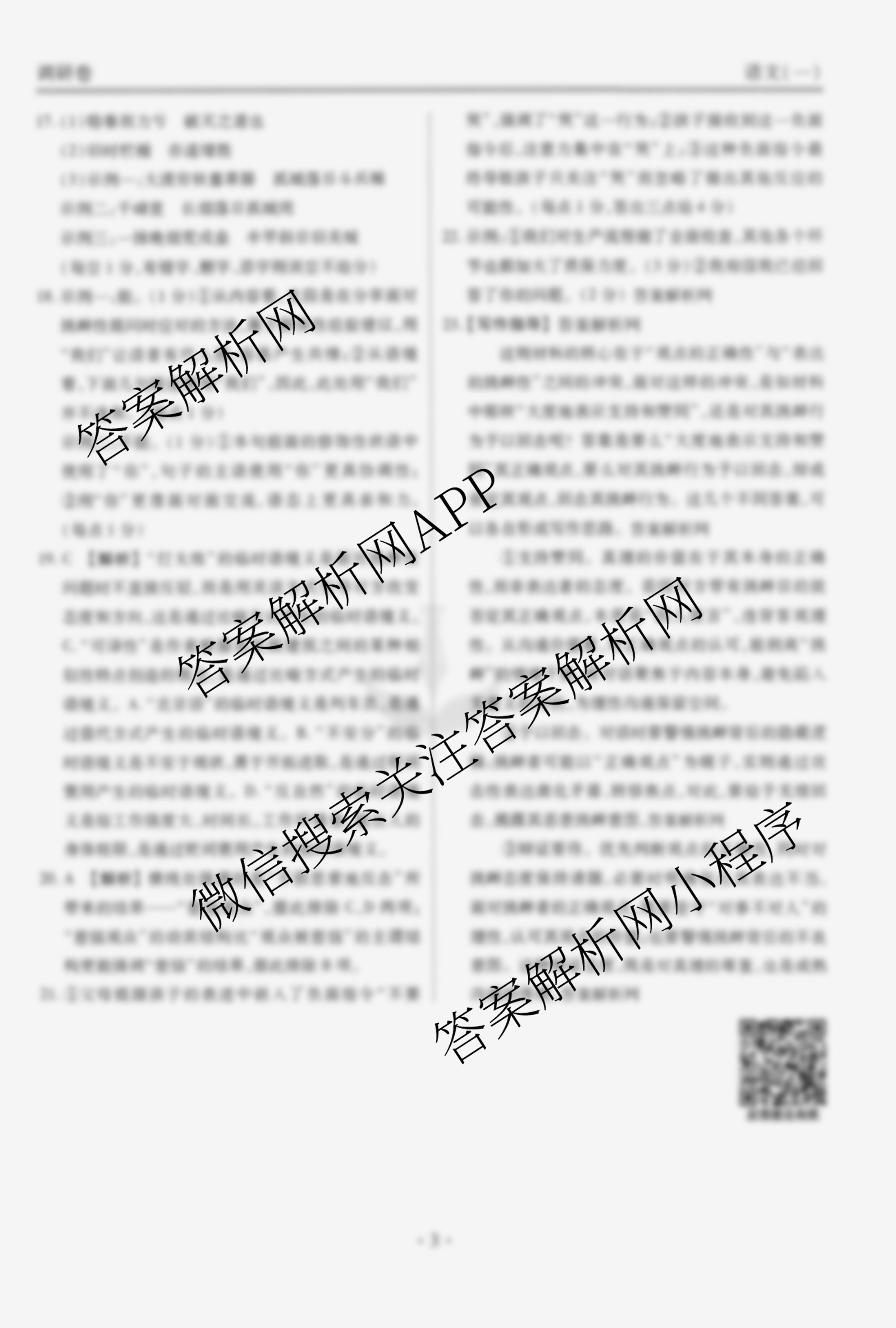 - [高三]衡水金卷先享题调研卷2026年普通高等学校招生全国统一考试模拟试题(一)1语文答案