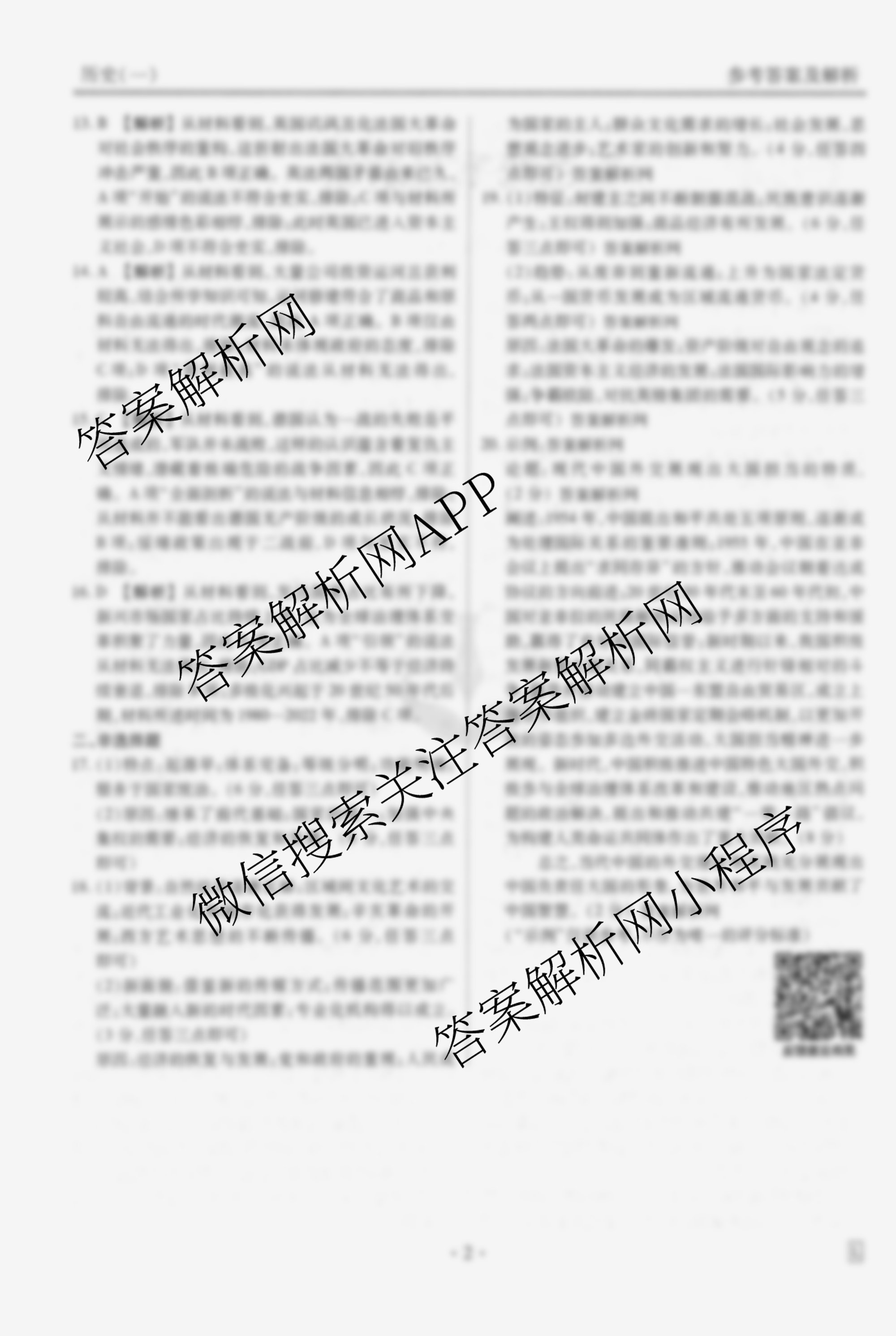 - [高三](衡水金卷先享题)调研卷2026年普通高中学业水平选择性考试模拟试题(一)1历史(GD)答案
