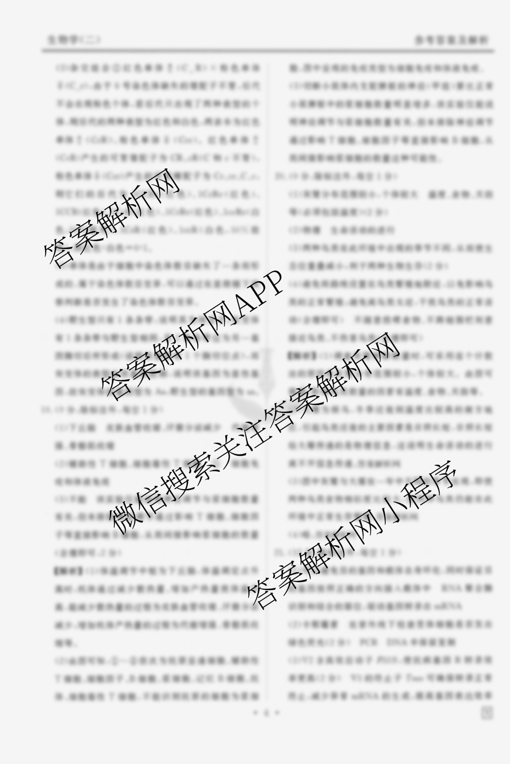 衡水金卷先享题·调研卷·2026年普通高中学业水平选择性考试模拟(二)2生物(Y)答案由衡中同卷整理,获取更多衡水金卷先享题答案解析,请在各大应用商店搜索下载答案解析网APP。