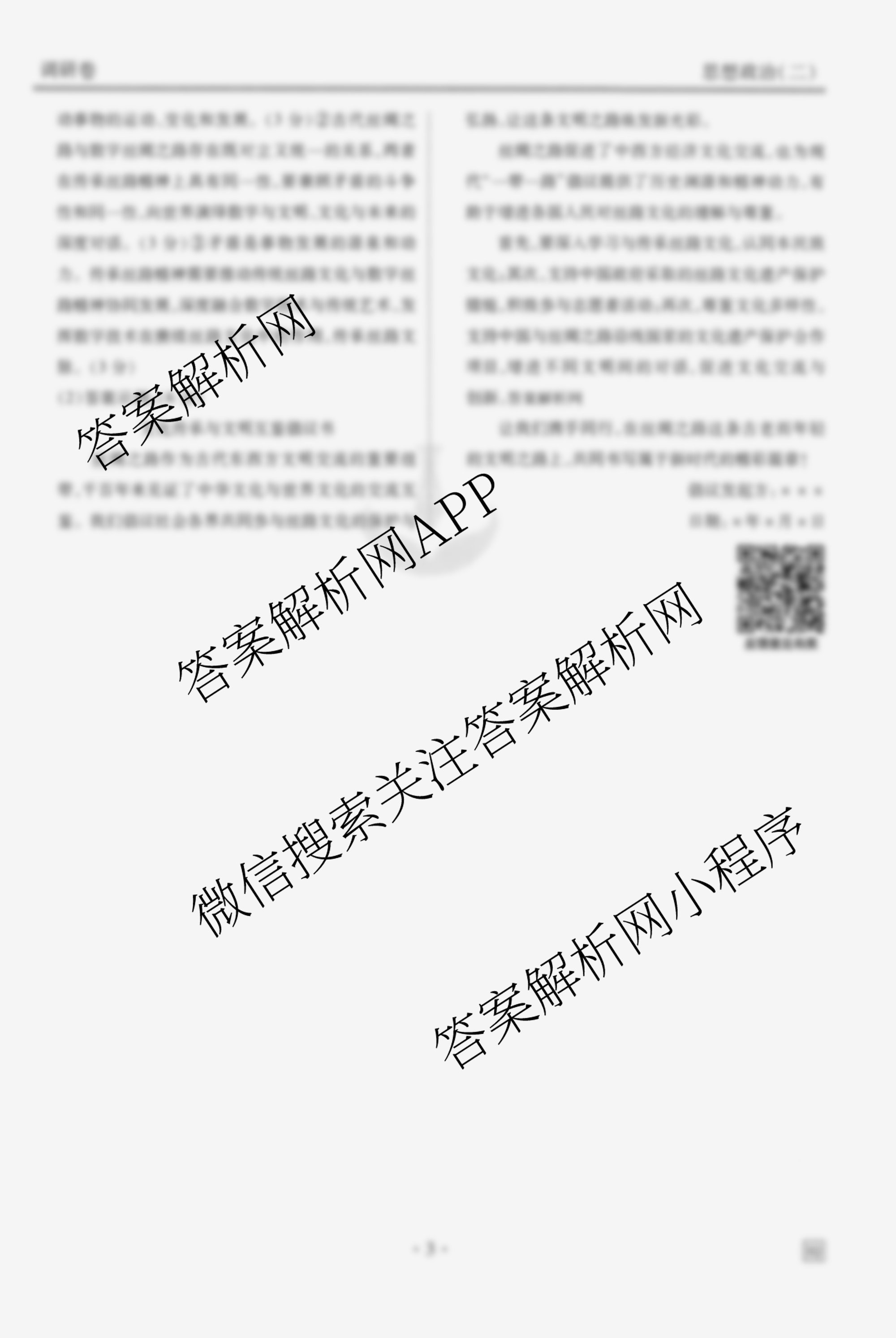 衡水金卷先享题·调研卷·2026年普通高中学业水平选择性考试模拟(二)2政治(HJ)答案由衡中同卷整理,获取更多衡水金卷先享题答案解析,请在各大应用商店搜索下载答案解析网APP。