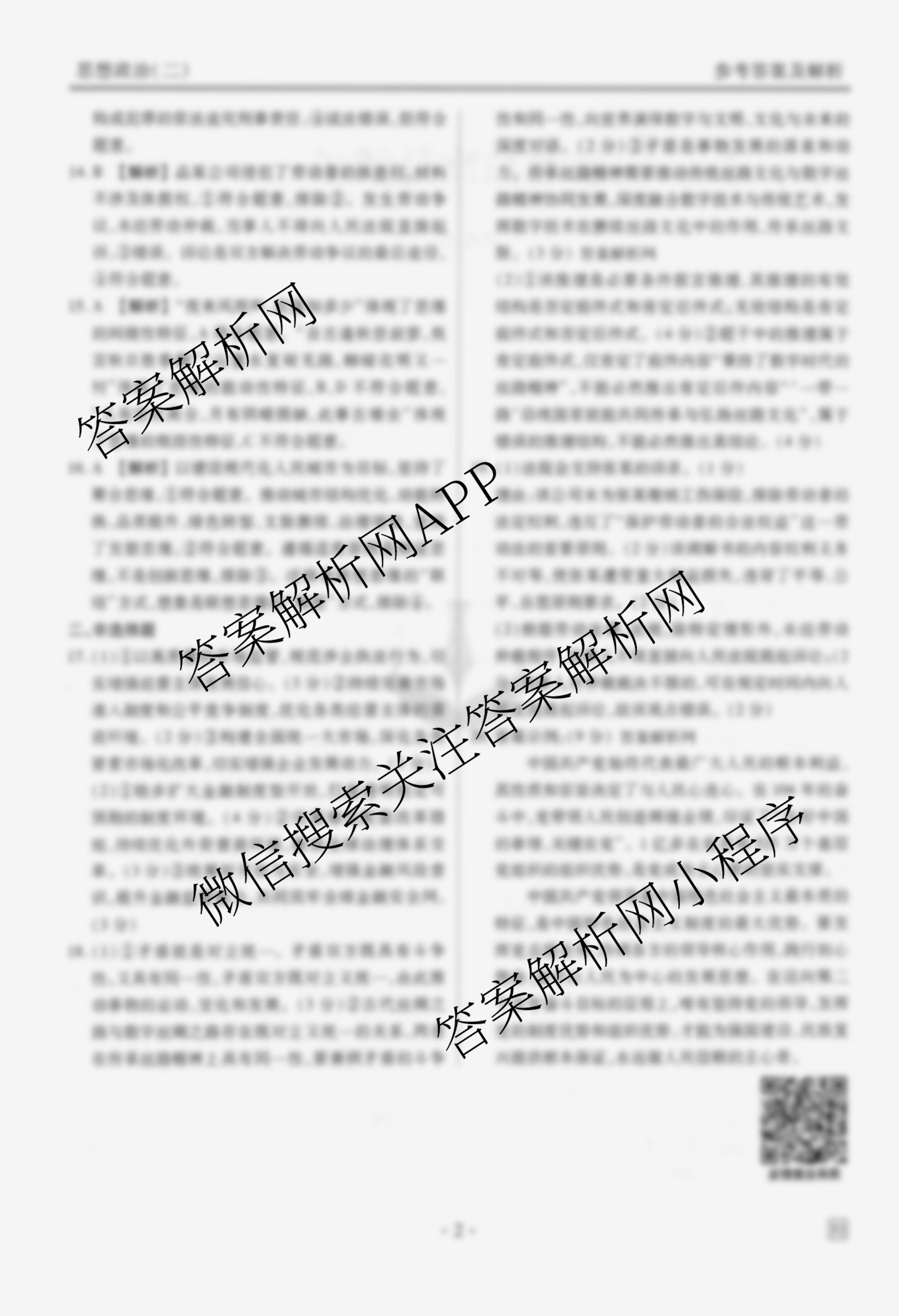 衡水金卷先享题·调研卷·2026年普通高中学业水平选择性考试模拟(二)2政治(FJ)答案由衡中同卷整理,获取更多衡水金卷先享题答案解析,请在各大应用商店搜索下载答案解析网APP。
