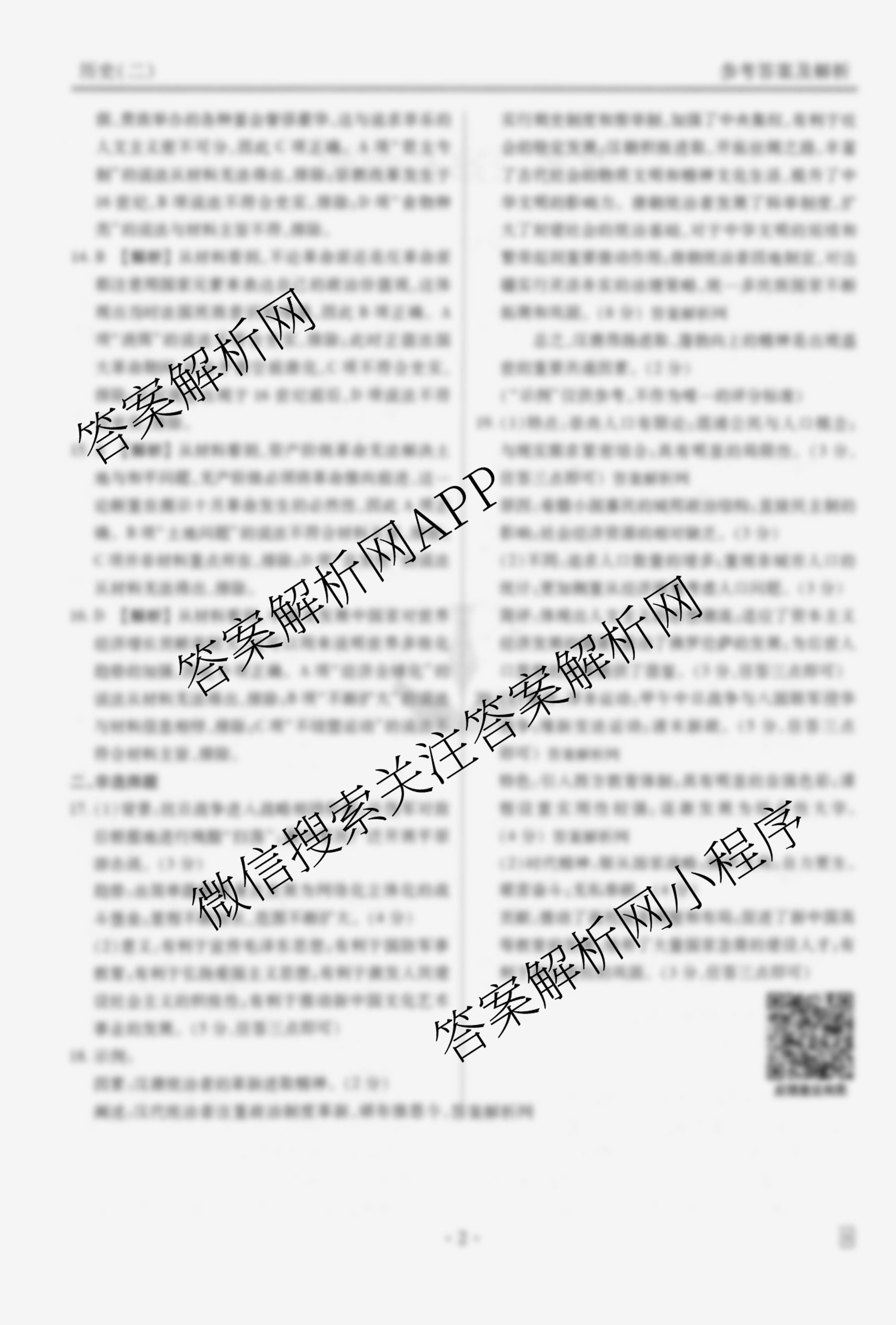 - (衡水金卷先享题)调研卷2026年普通高中学业水平选择性考试模拟试题(二)2历史(HN)答案